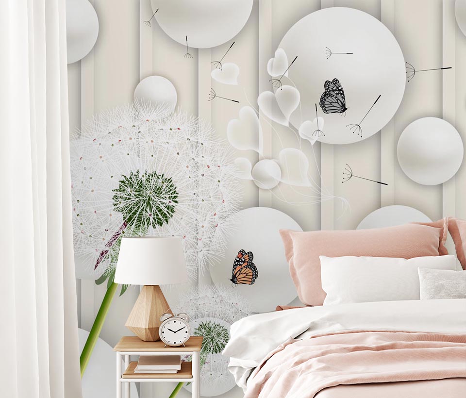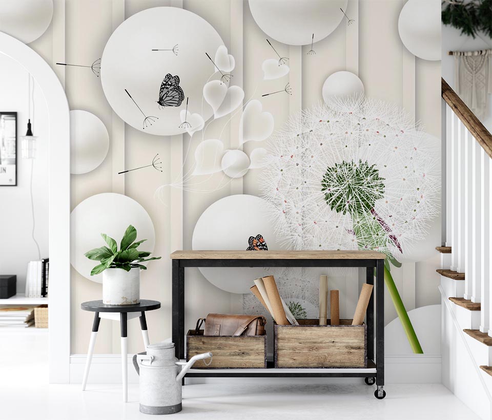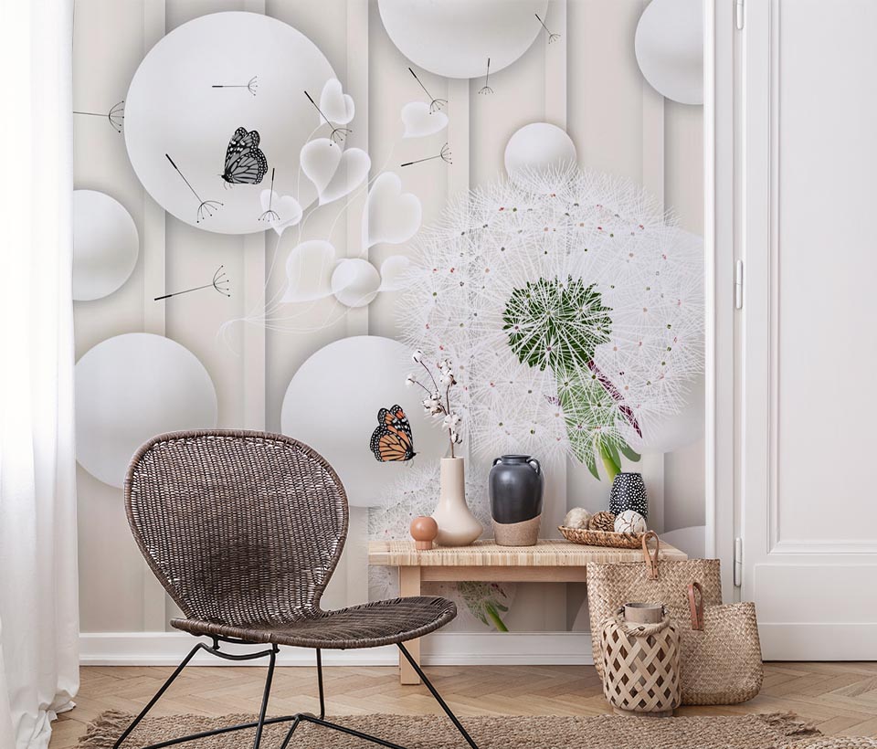 3D обои Одуванчики и бабочки арт. 6140920191d