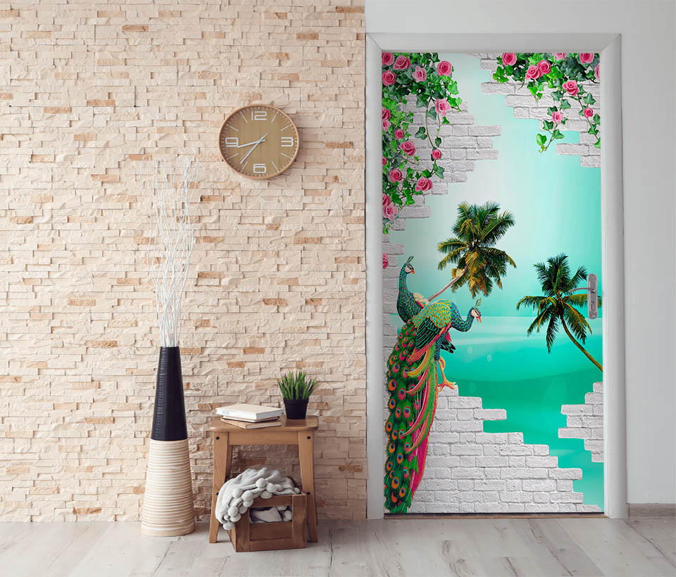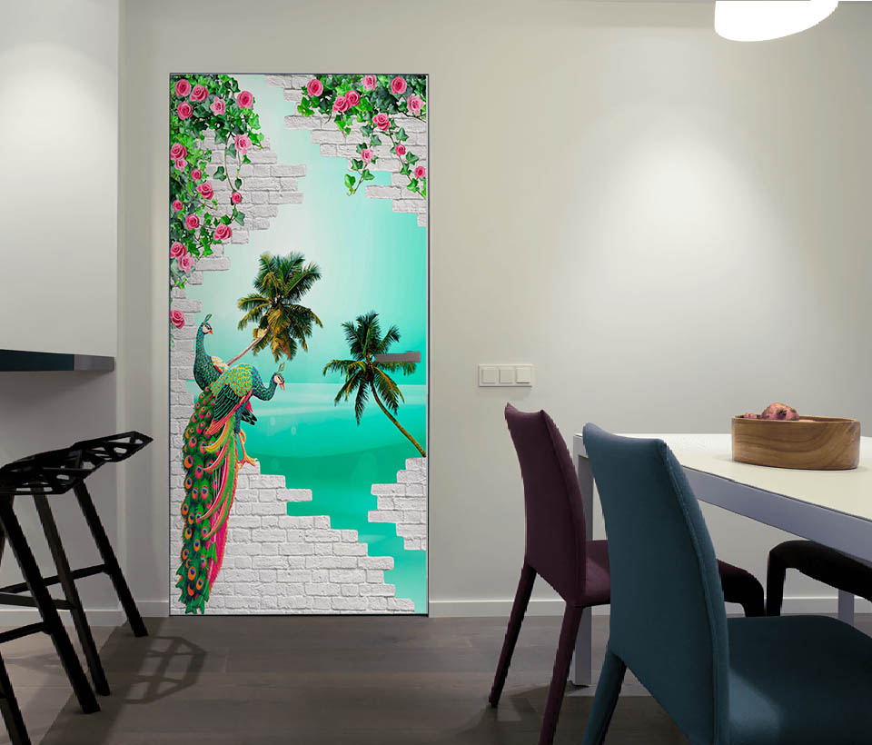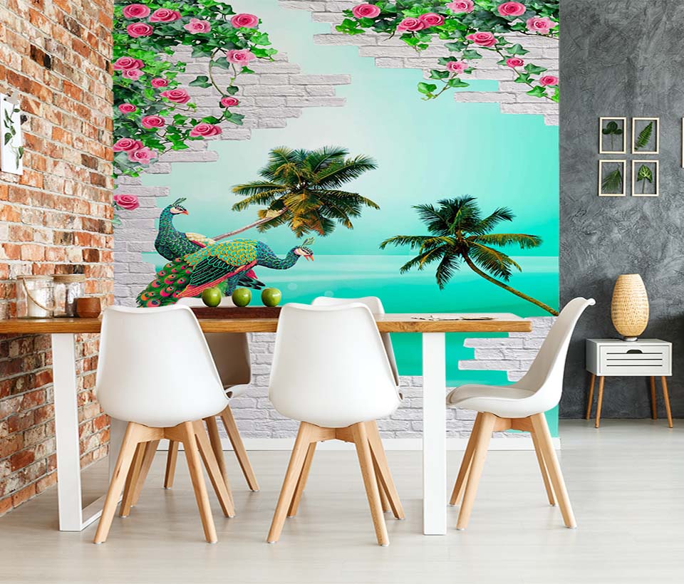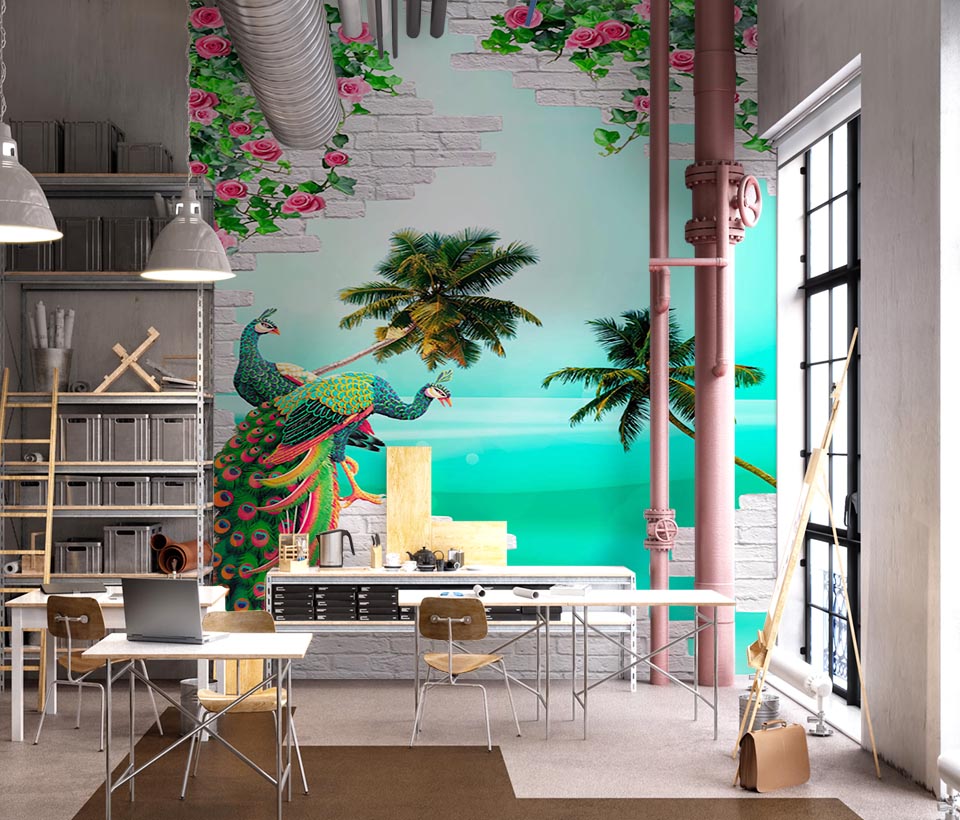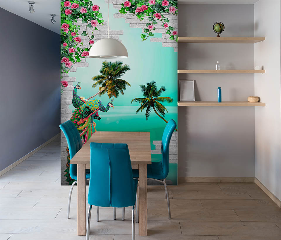 3D обои Павлины на стене арт. 120920188d
