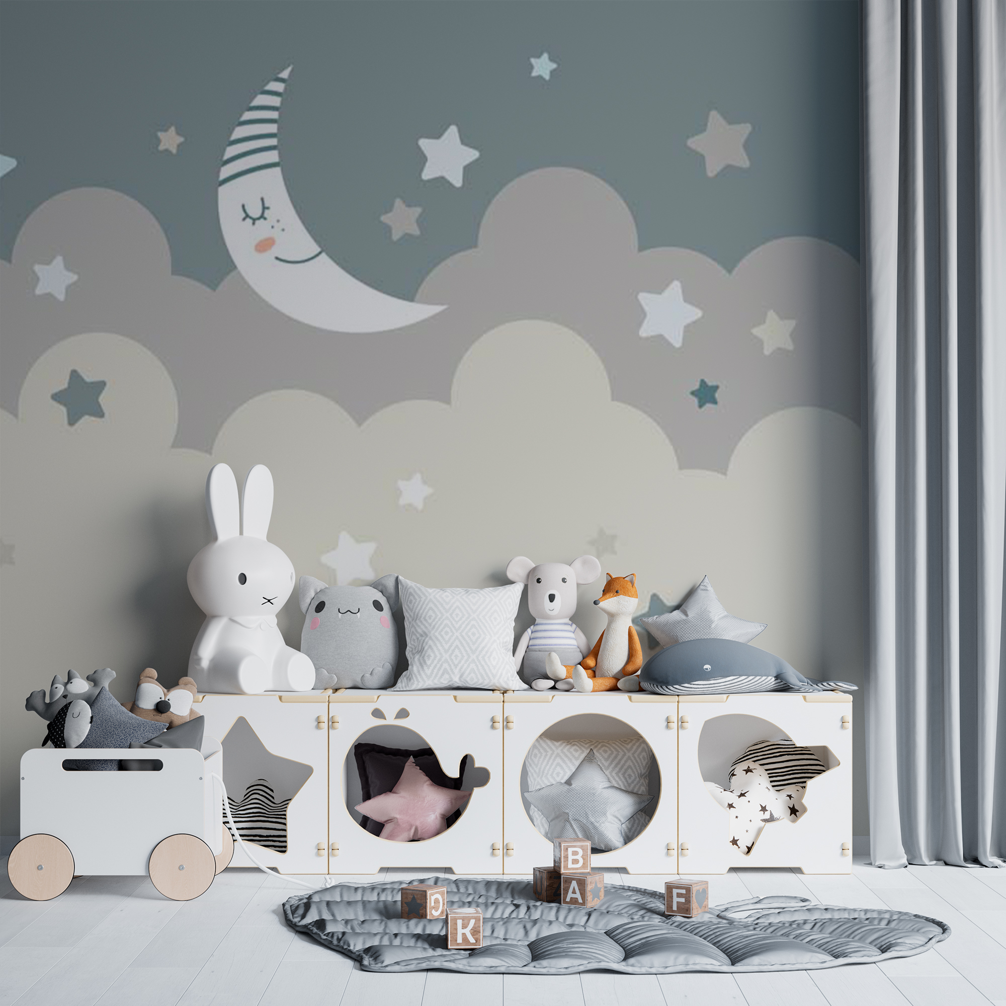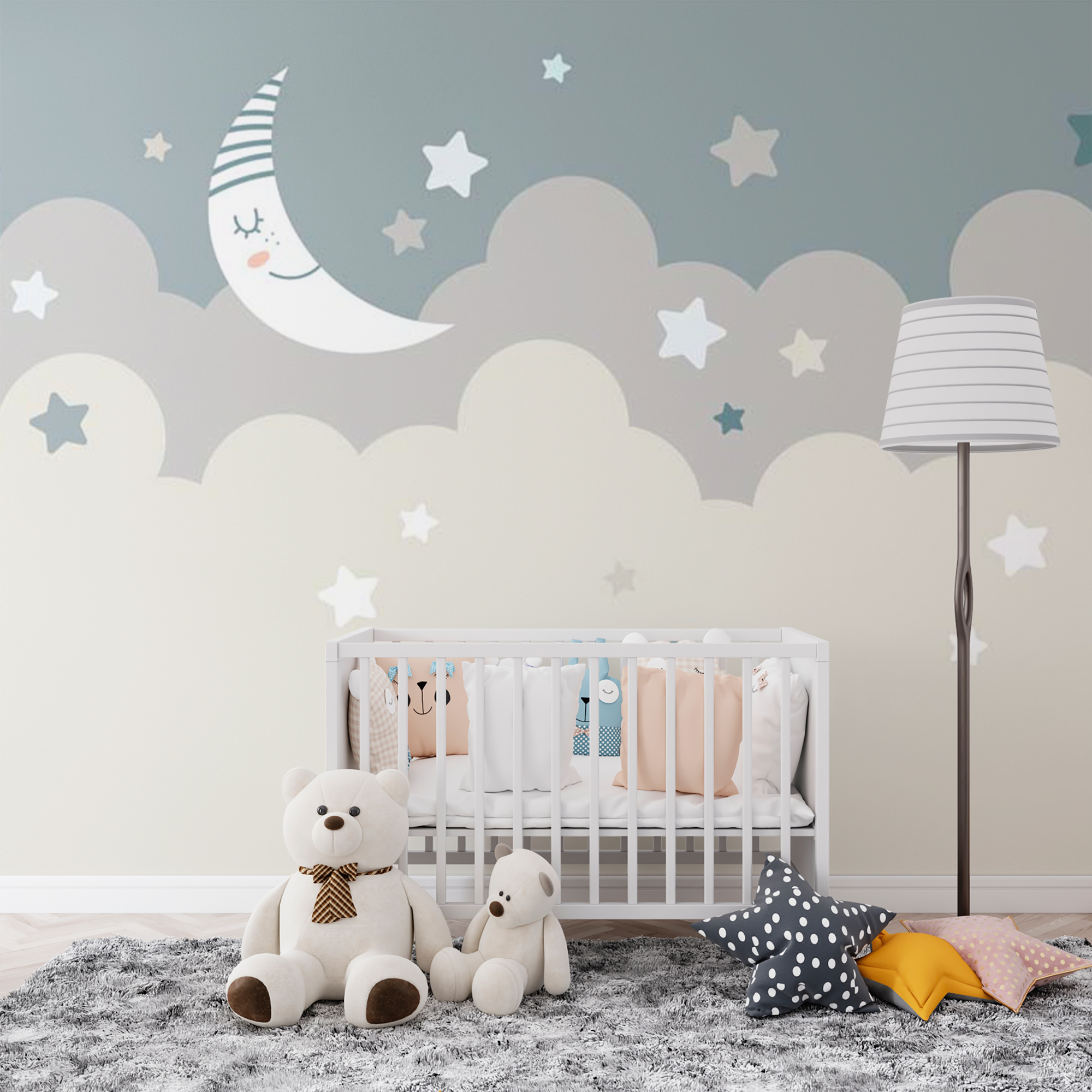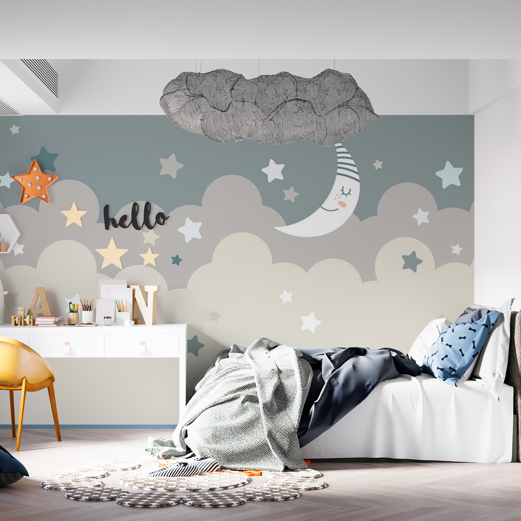 Фотообои "Месяц в облаках" выполнены на немецкой флизелиновой основе с виниловым покрытием. Обои из категории Детские будут служить не только украшением детской комнаты, но и с их помощью малыш сможет изучать мир.