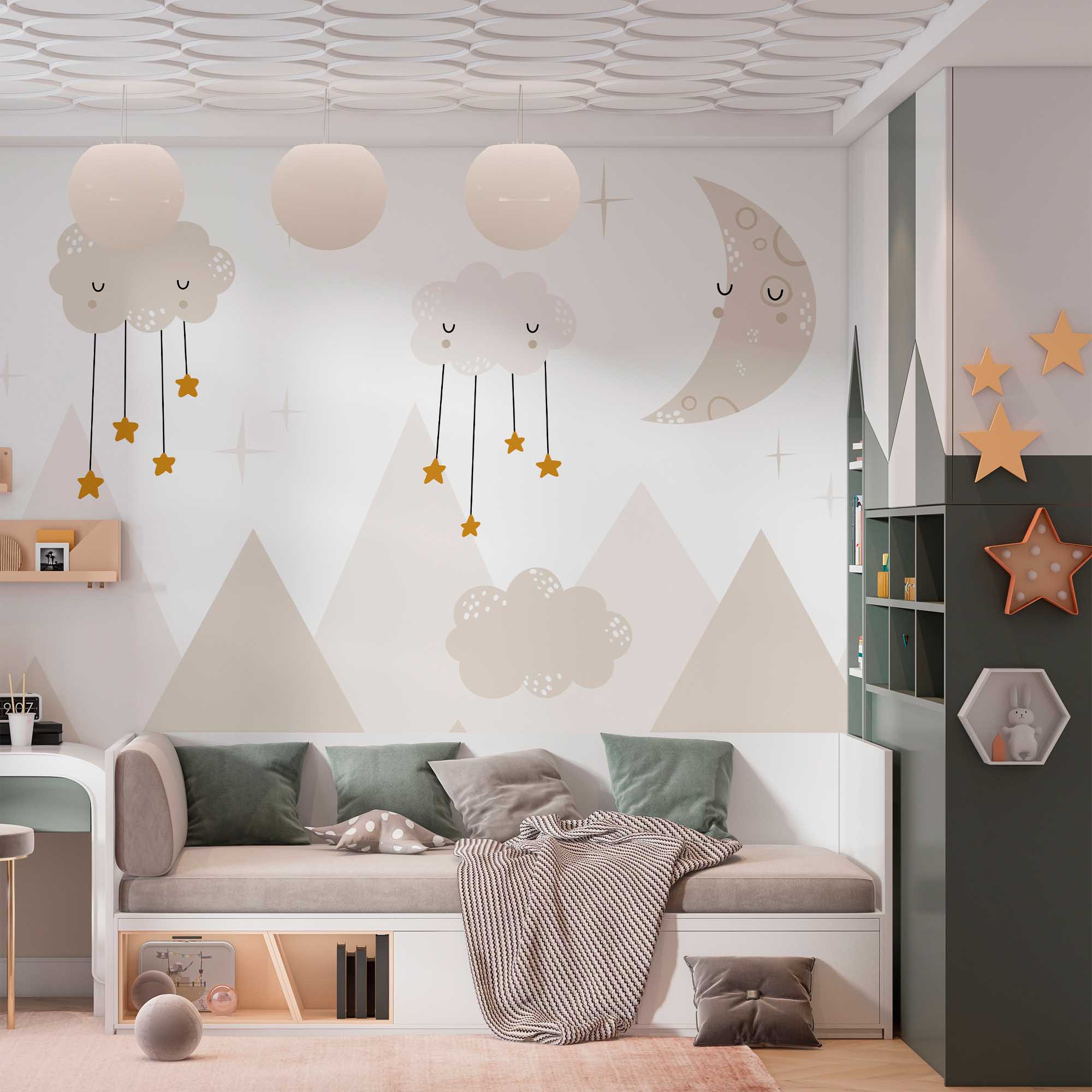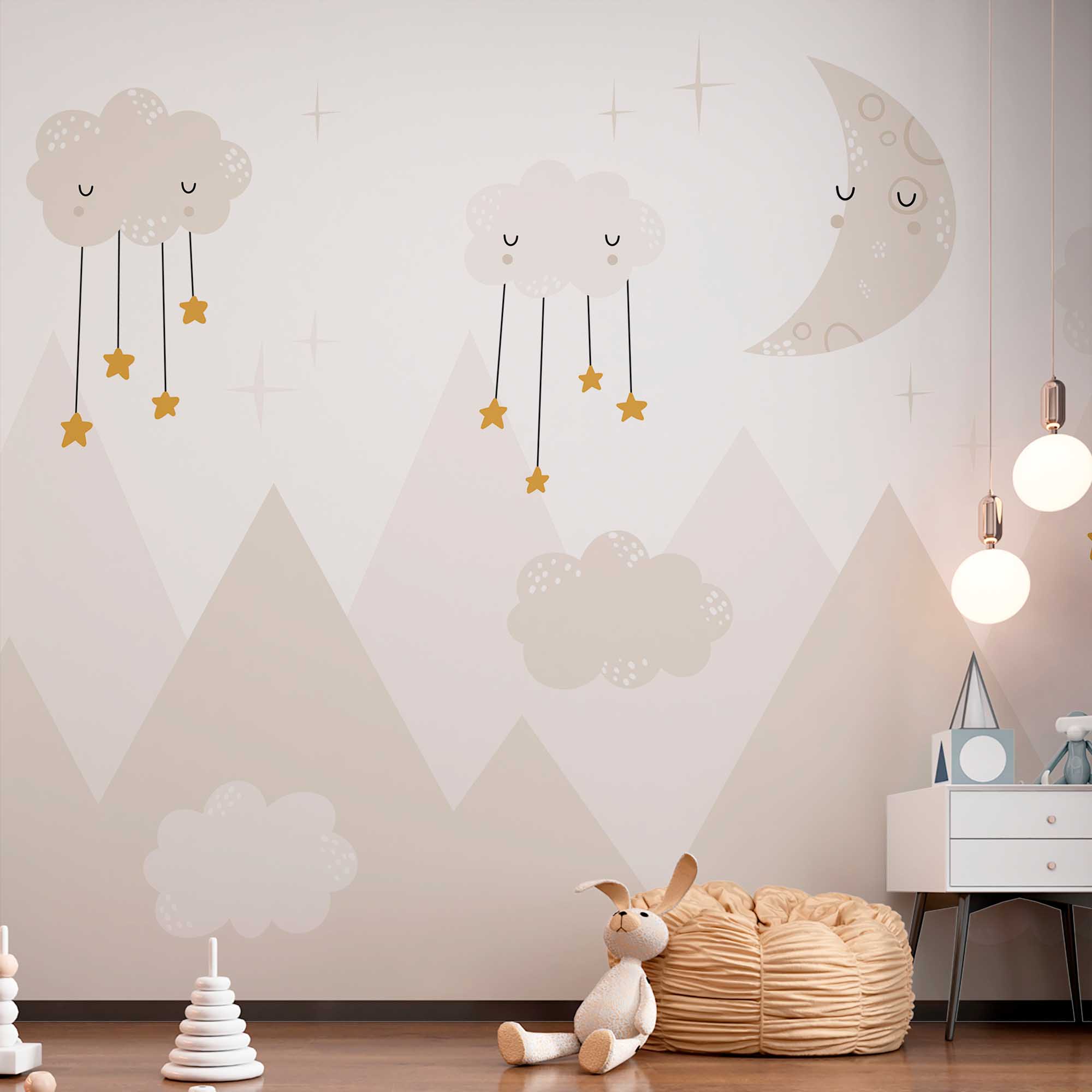 Фотообои "Спящие облака" выполнены на немецкой флизелиновой основе с виниловым покрытием. Обои из категории Детские будут служить не только украшением детской комнаты, но и с их помощью малыш сможет изучать мир.
