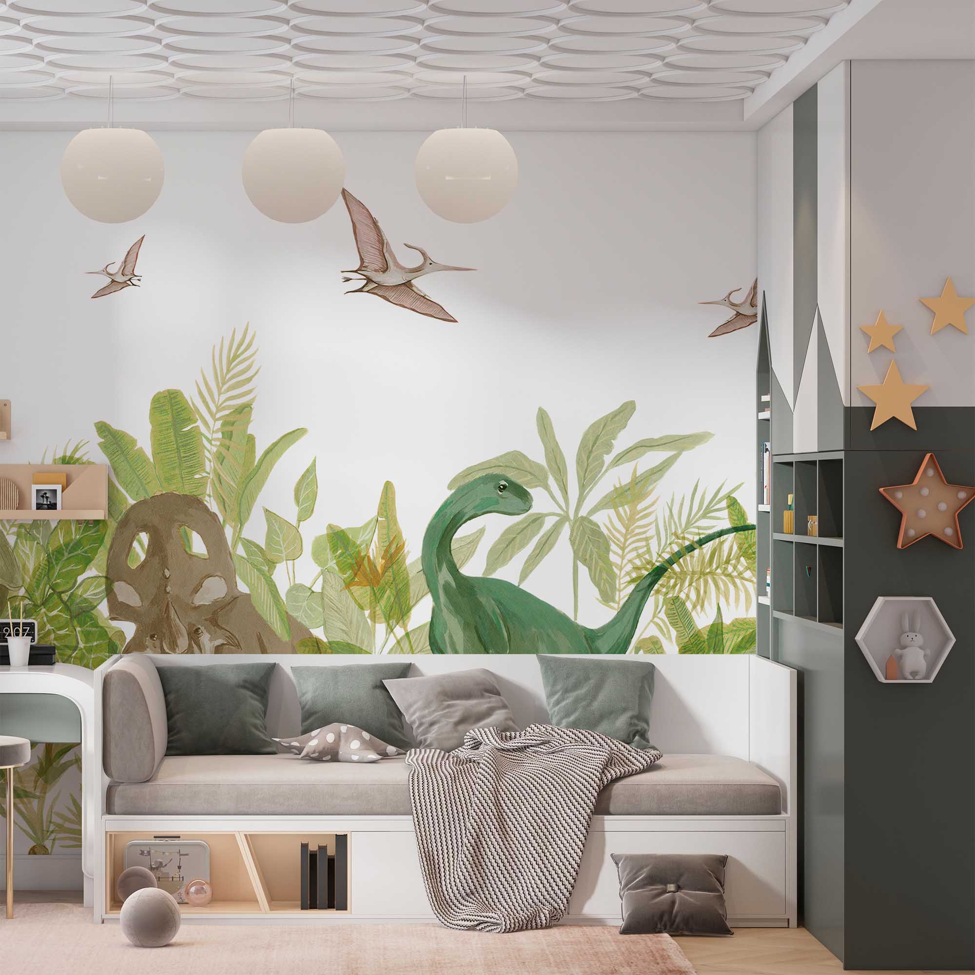 Фотообои "Динозавры" выполнены на немецкой флизелиновой основе с виниловым покрытием. Обои из категории Детские будут служить не только украшением детской комнаты, но и с их помощью малыш сможет изучать мир.