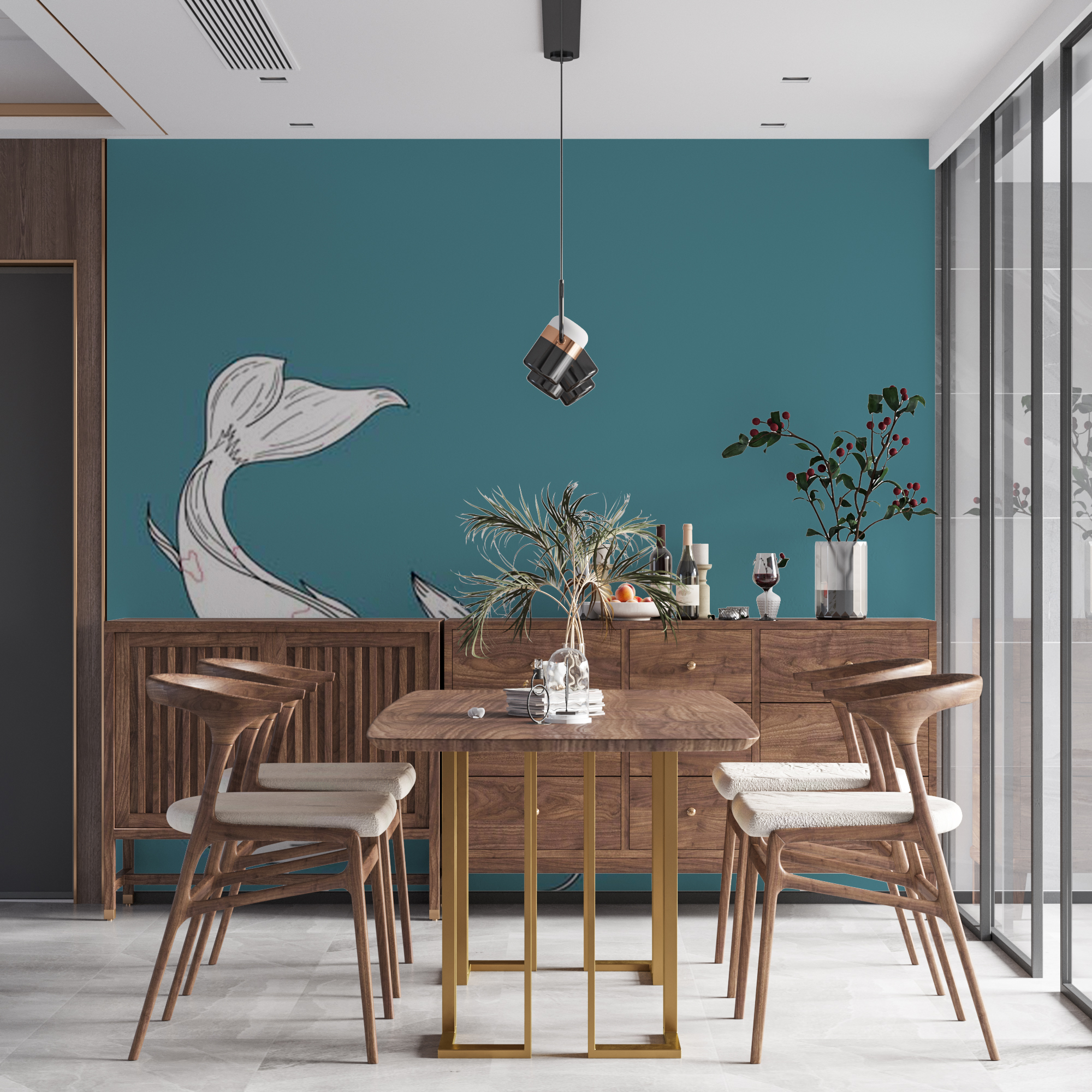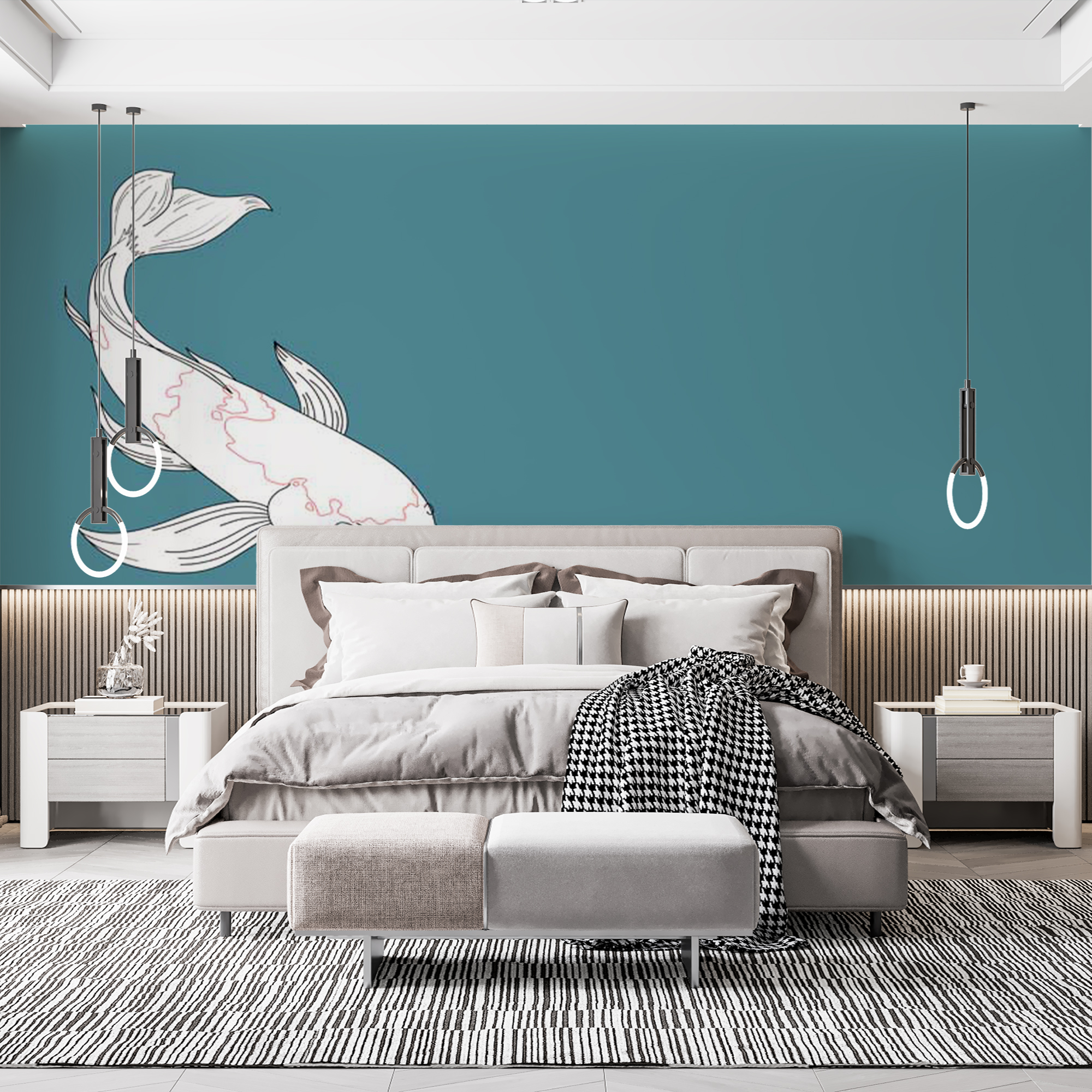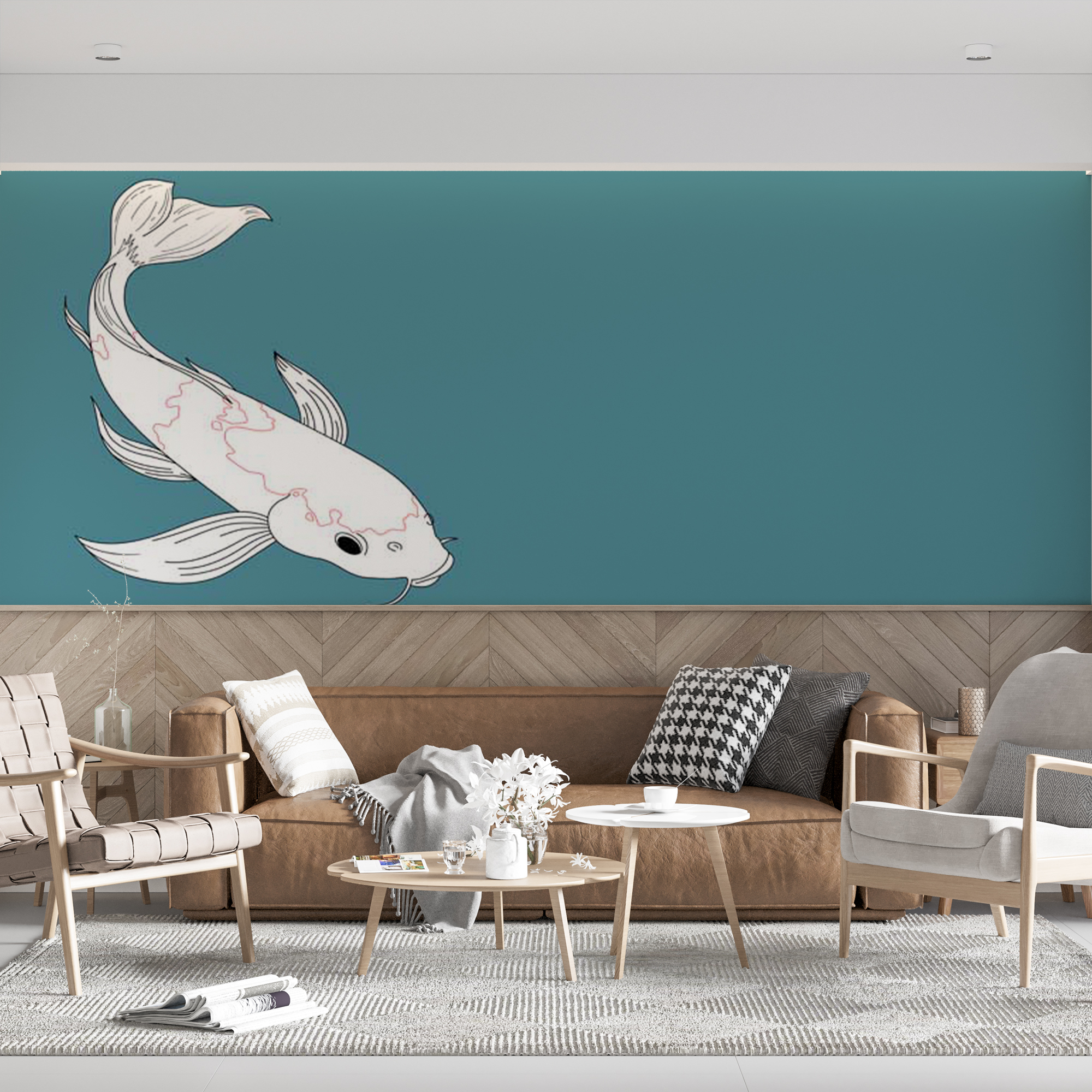 Фотообои "Арт карп" выполнены на немецкой флизелиновой основе с виниловым покрытием. Обои из категории Животными имеют широкий спектр применения: от ванной комнаты до детской.