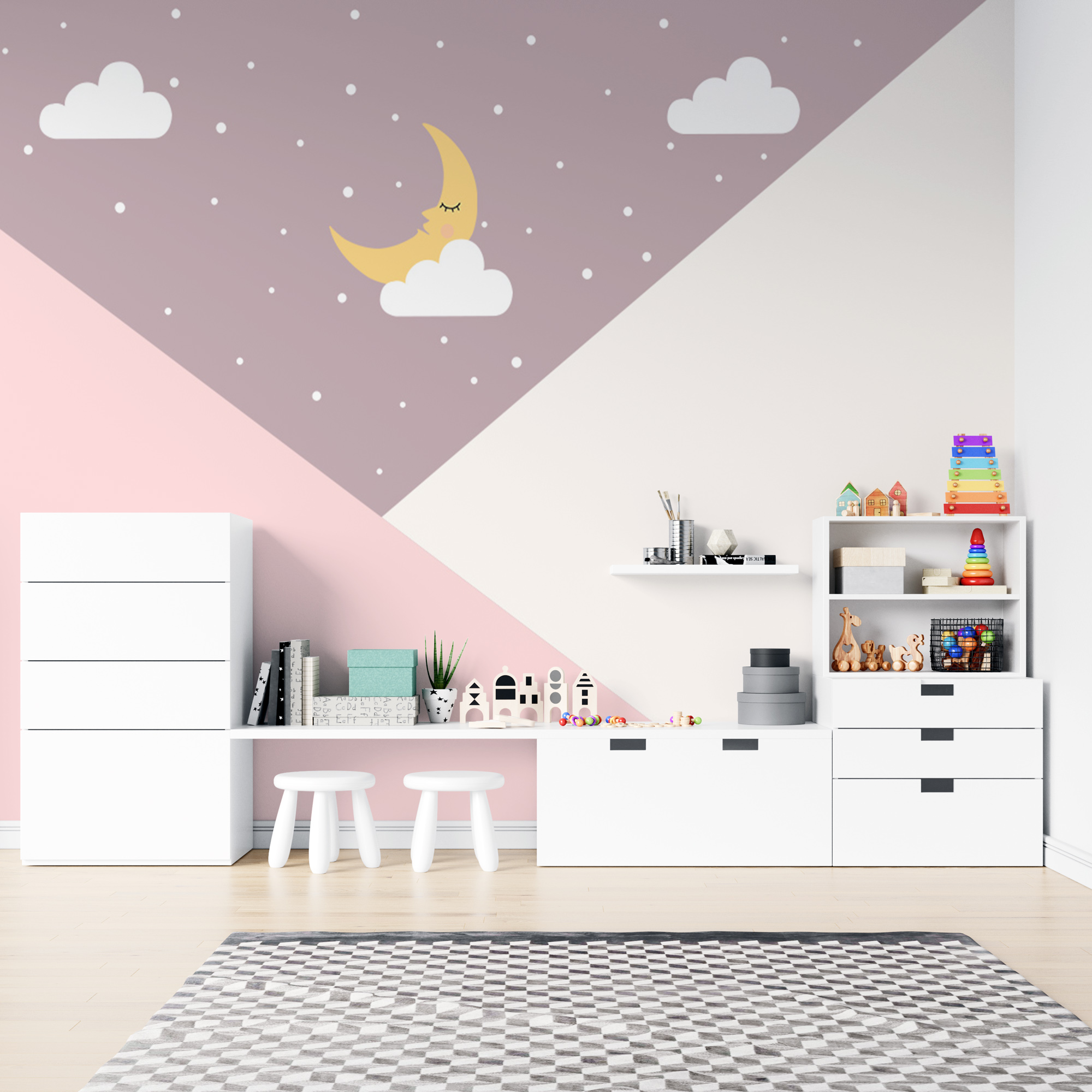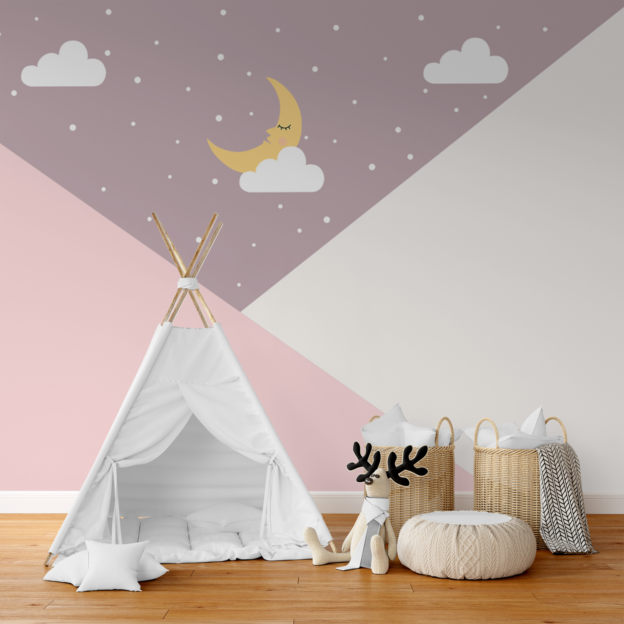 Фотообои "Месяц в облаках" выполнены на немецкой флизелиновой основе с виниловым покрытием. Обои из категории Детские будут служить не только украшением детской комнаты, но и с их помощью малыш сможет изучать мир.