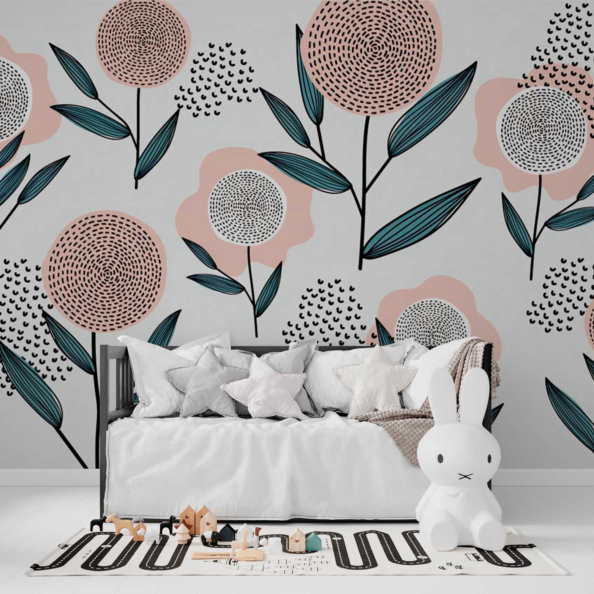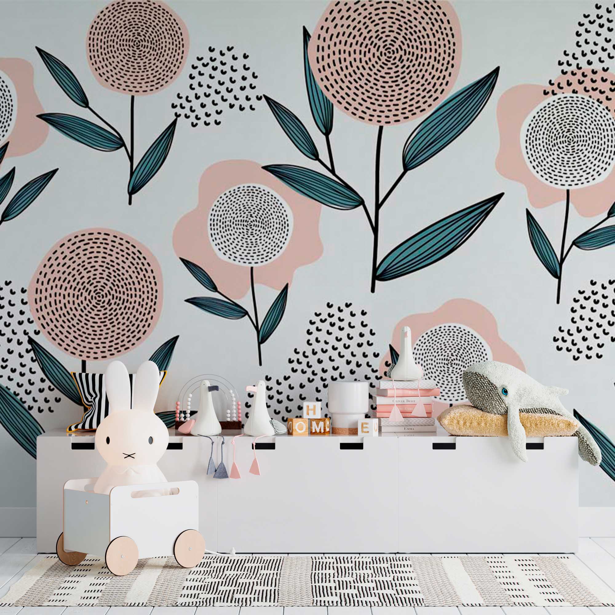 Фотообои "Графические цветы" выполнены на немецкой флизелиновой основе с виниловым покрытием. Обои из категории Детские будут служить не только украшением детской комнаты, но и с их помощью малыш сможет изучать мир.