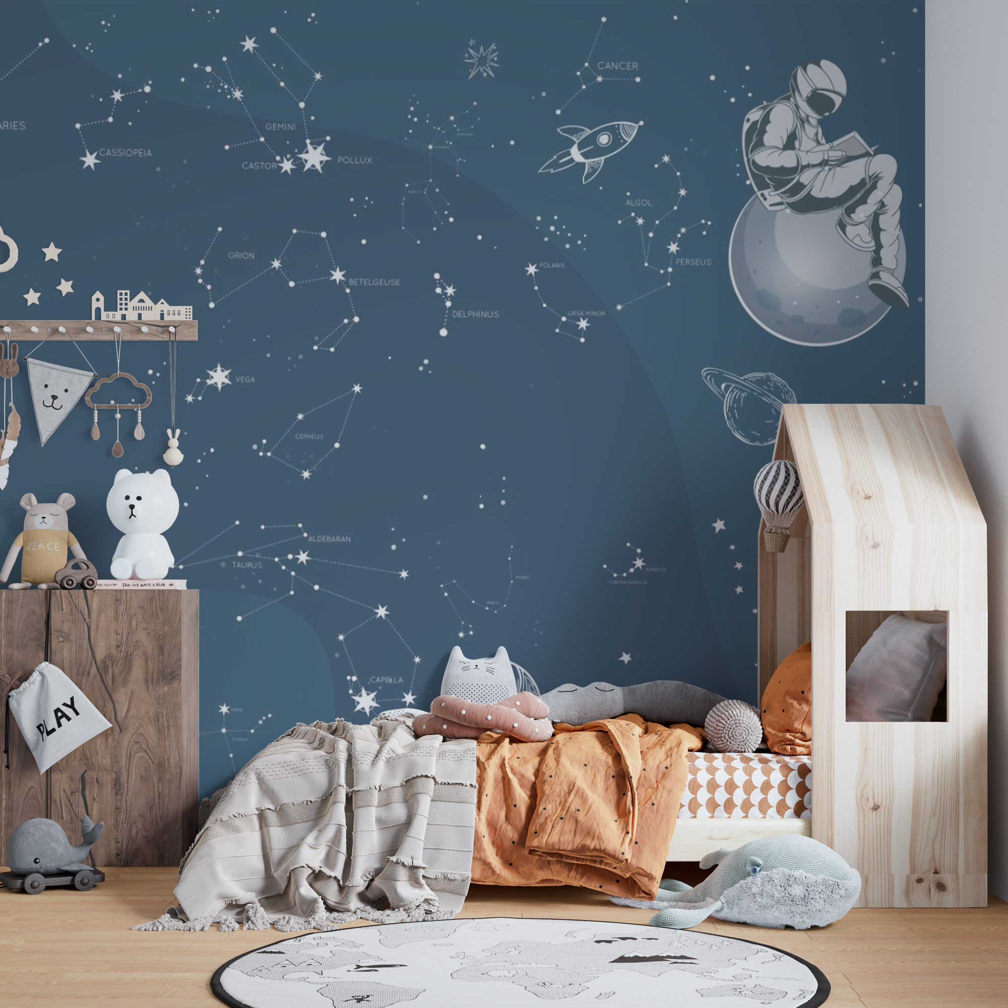 Фотообои "Космонавт и созвездия" выполнены на немецкой флизелиновой основе с виниловым покрытием. Обои из категории Детские будут служить не только украшением детской комнаты, но и с их помощью малыш сможет изучать мир.