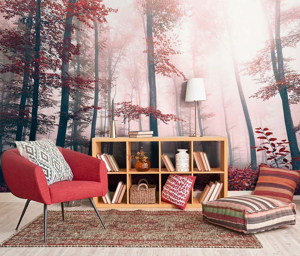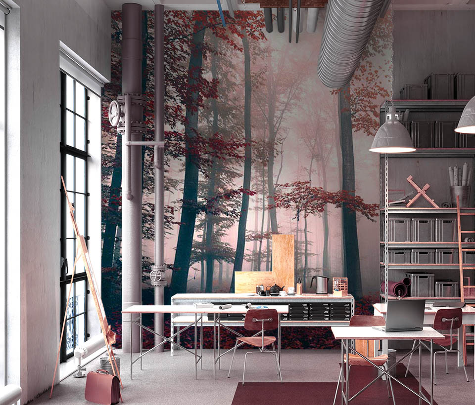 Почему выгодно заказать Фотообои "Багровый лес в тумане" Artside?