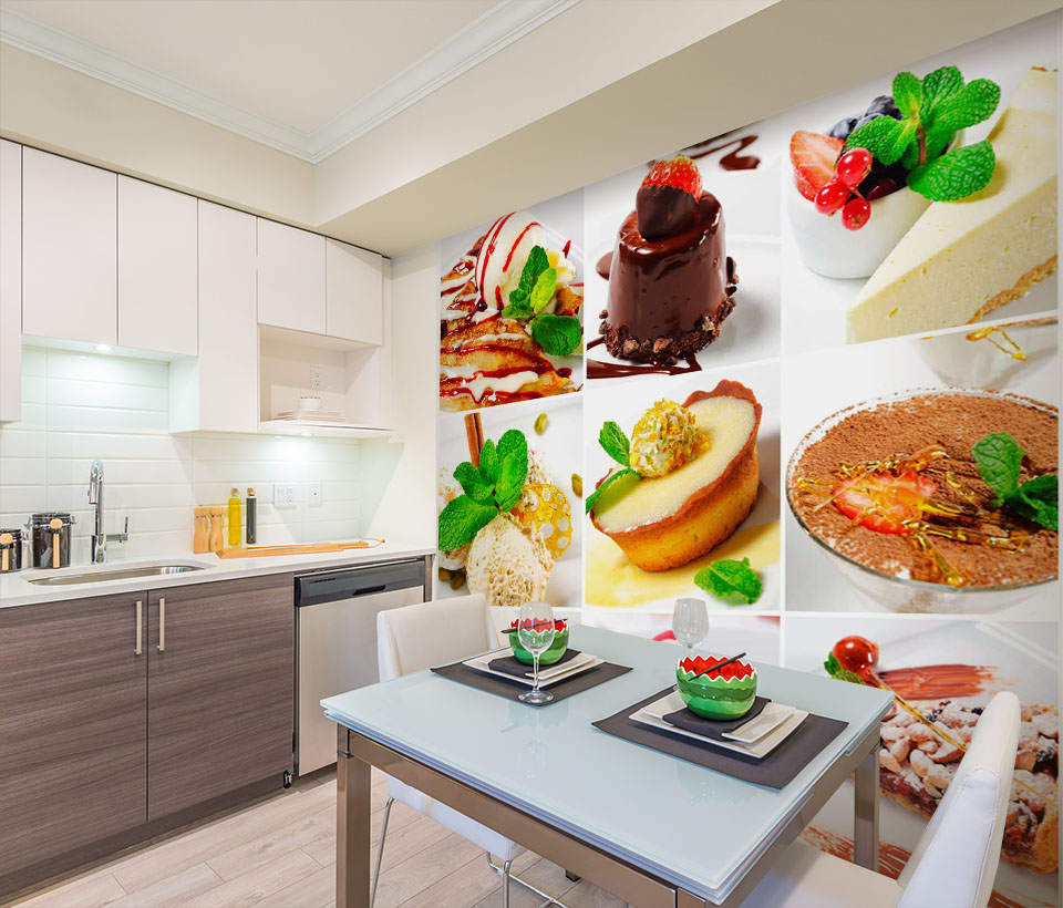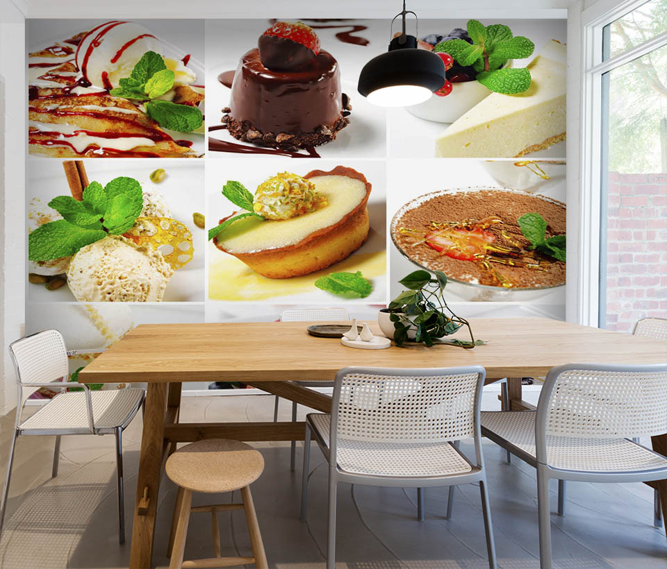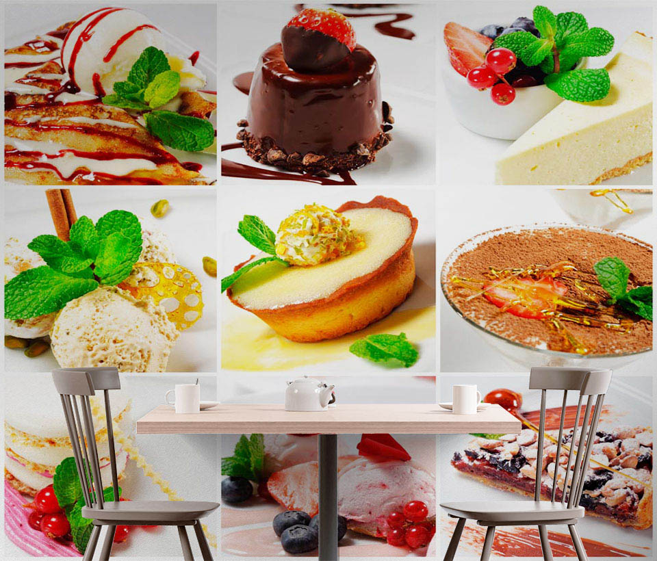 Фотообои "Десерты" выполнены на немецкой флизелиновой основе с виниловым покрытием. Обои из категории Еда и Напитки станут настоящим украшением вашей кухни или обеденной зоны.