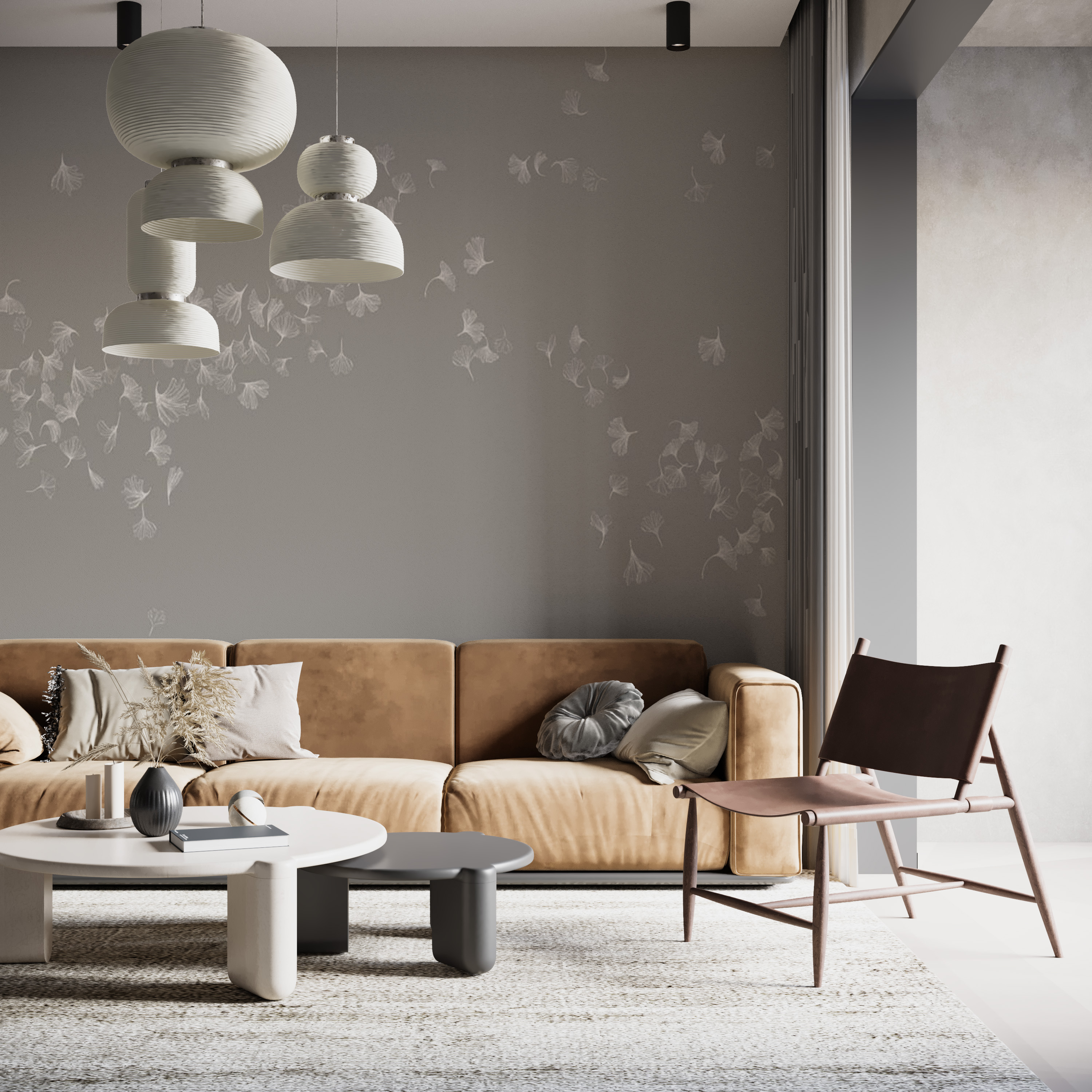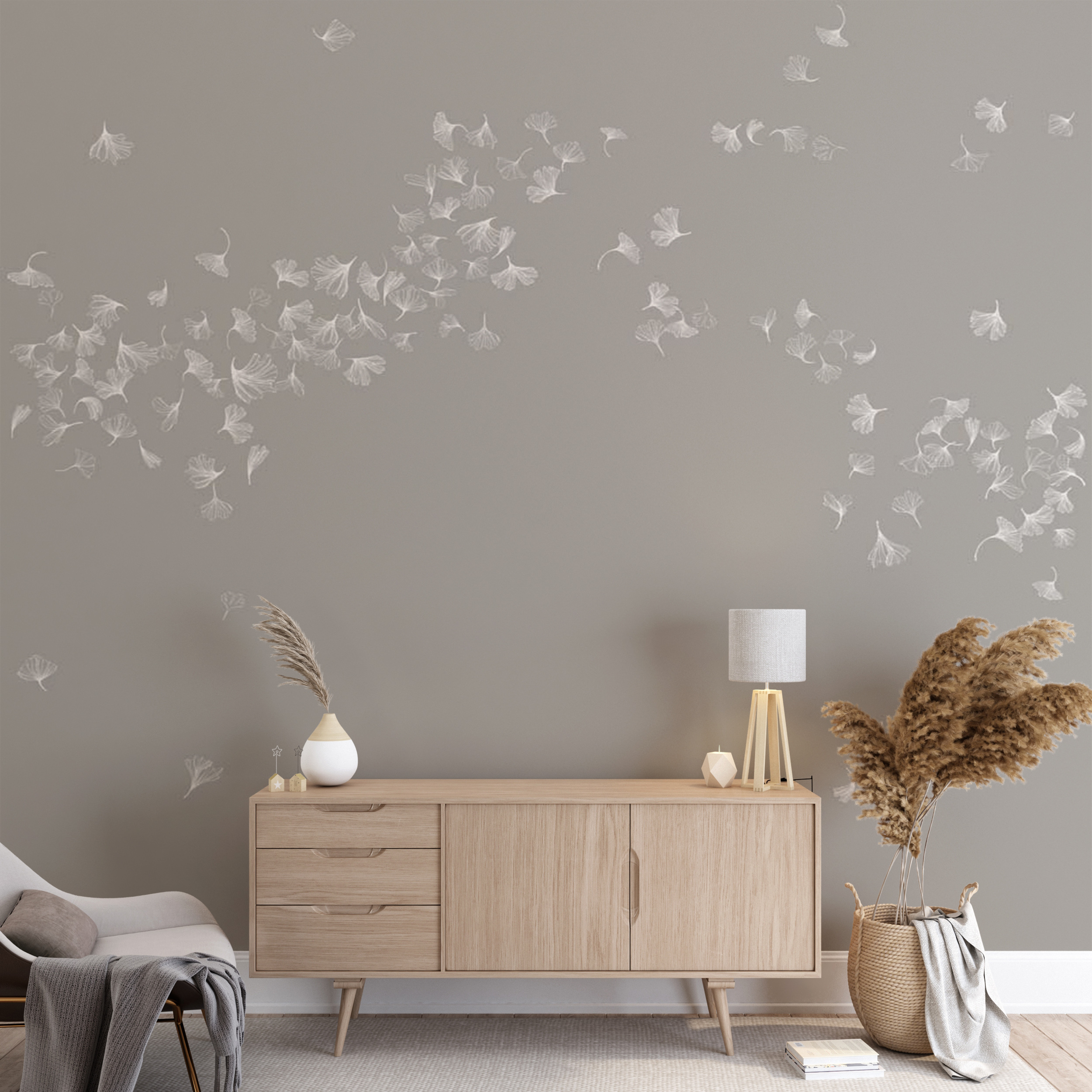 Бежевые птицы в стиле лайн арт