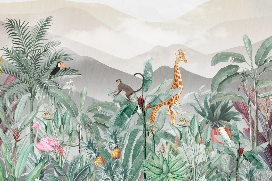 Фотообои "Джунгли в горах" выполнены на немецкой флизелиновой основе с виниловым покрытием. Обои из категории Детские будут служить не только украшением детской комнаты, но и с их помощью малыш сможет изучать мир.