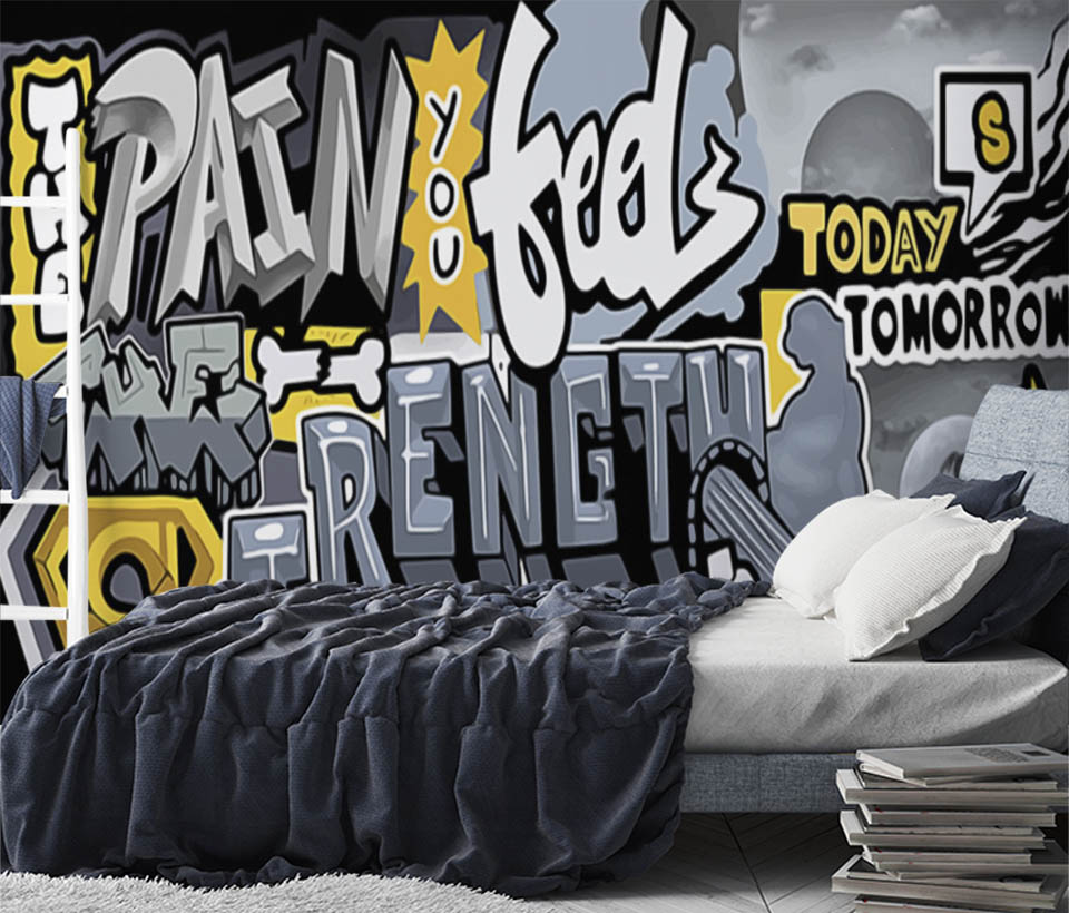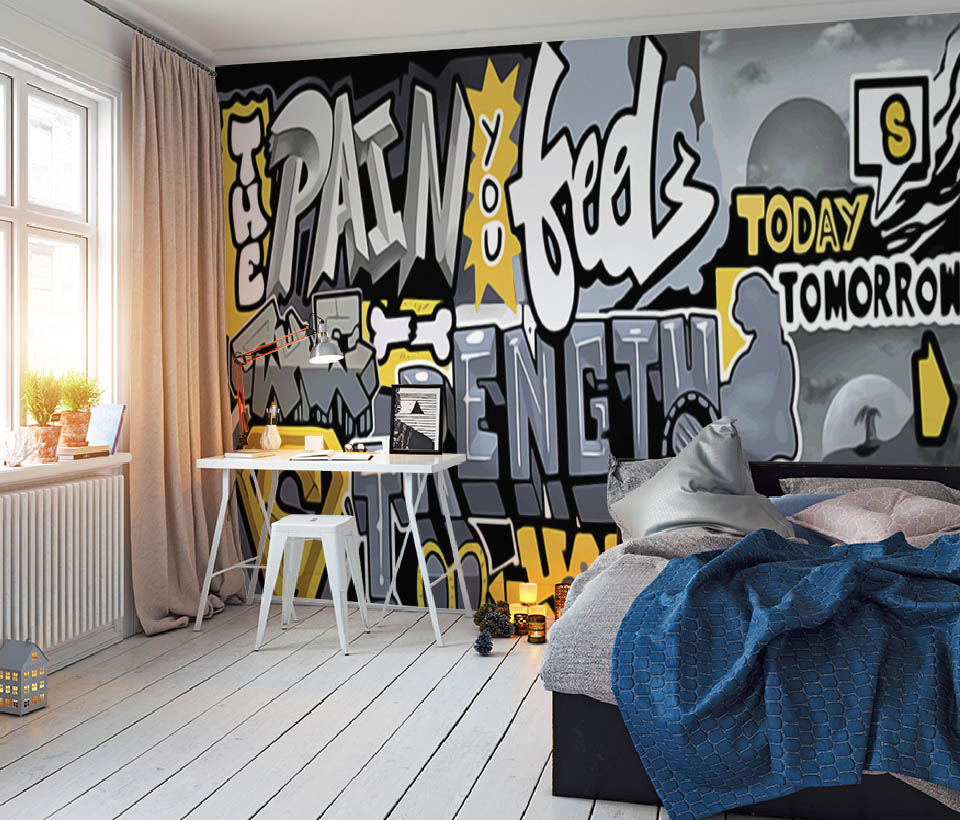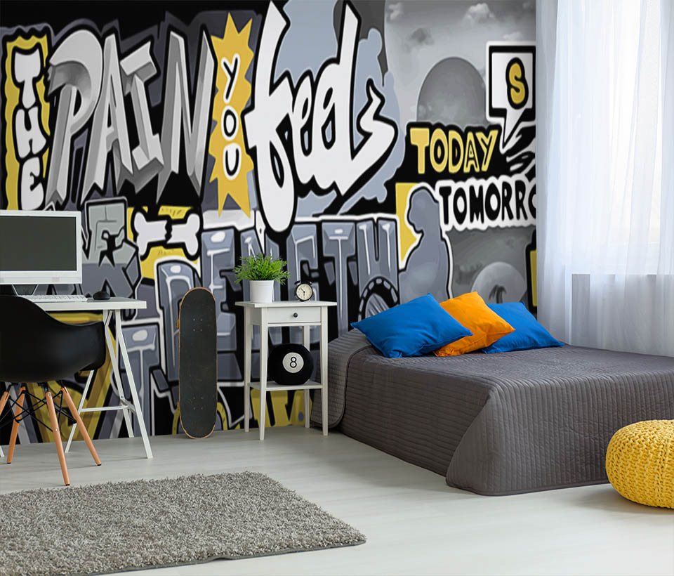 Фотообои "Граффити на стене" выполнены на немецкой флизелиновой основе с виниловым покрытием. Обои для Подростка подобраны с учетом интересов и увлечений современной молодежи.