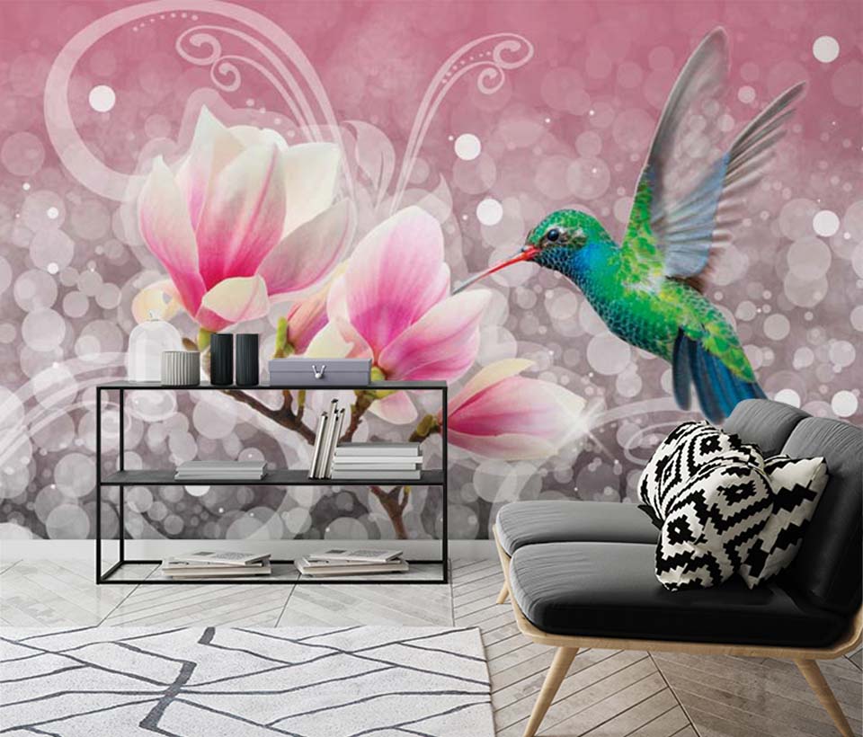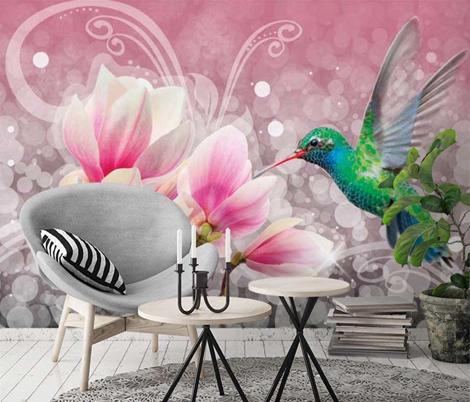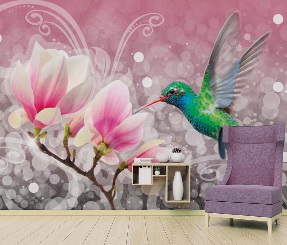 Фотообои Магнолии и колибри арт. 101120175d
