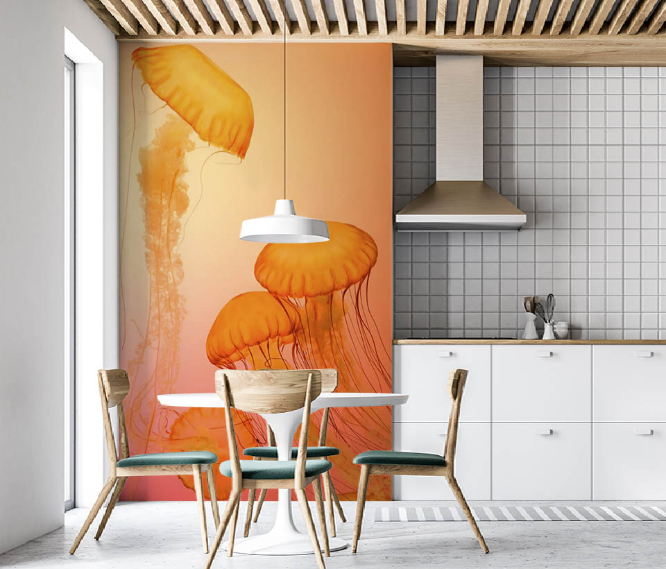 Фотообои "Медузы" выполнены на немецкой флизелиновой основе с виниловым покрытием. Обои из категории Животными имеют широкий спектр применения: от ванной комнаты до детской.