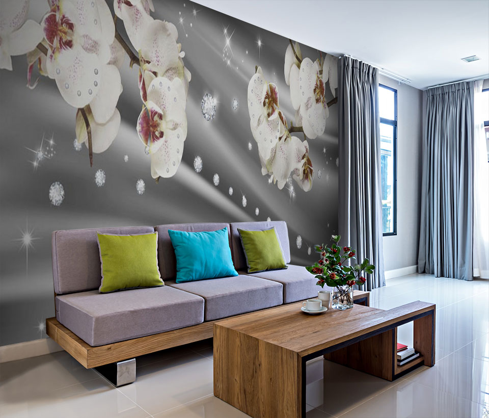 Фотообои Орхидеи на сером фоне арт. 290320182d