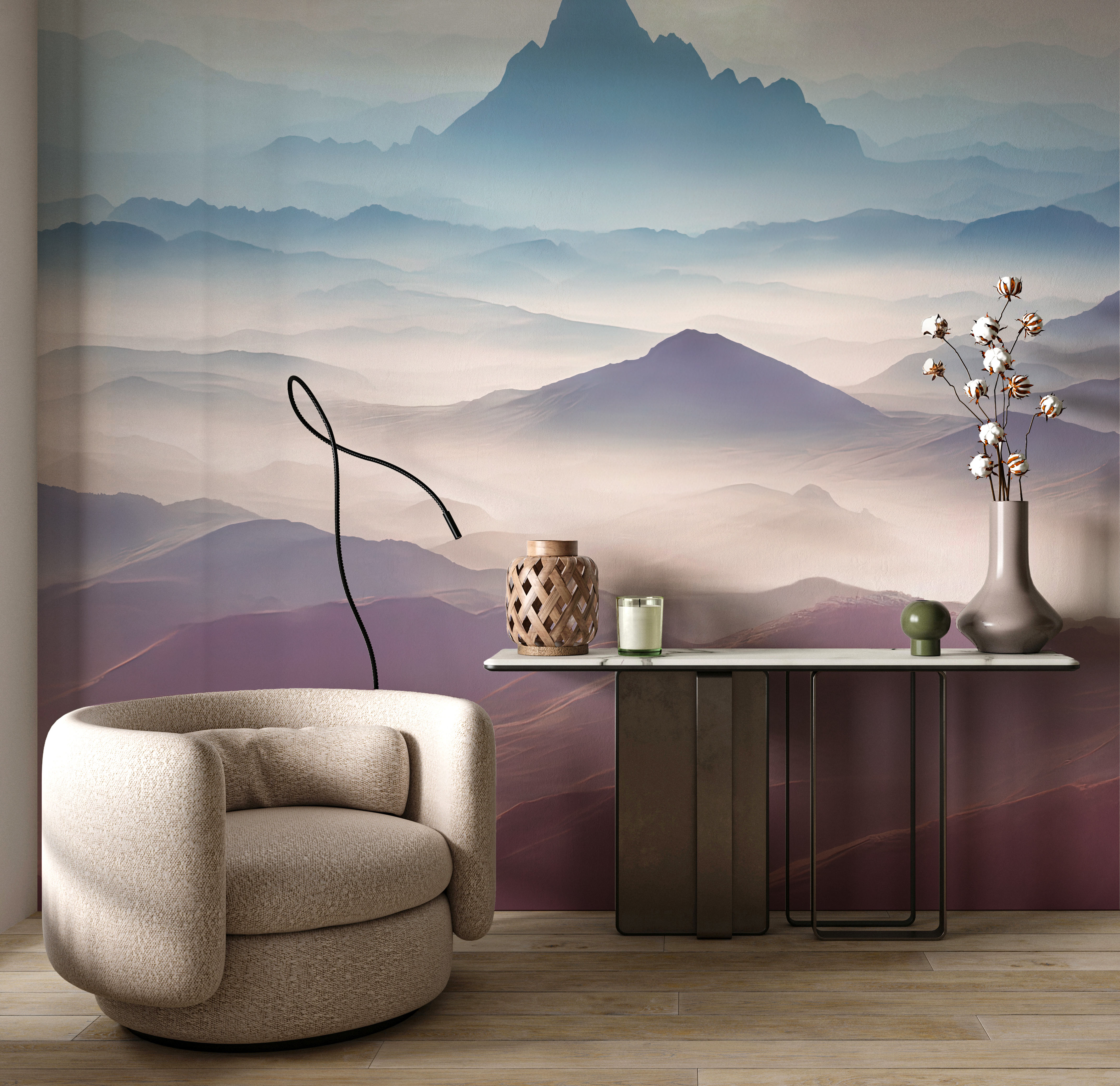 Почему выгодно заказать Фотообои "Розовый закат в горах" Artside?