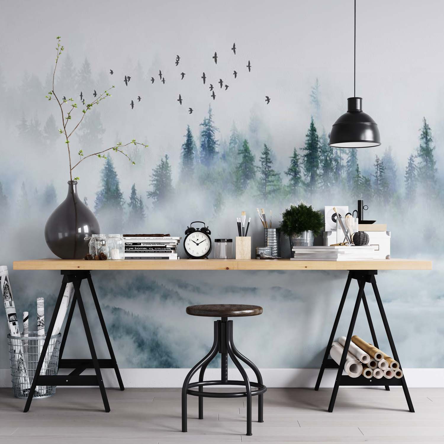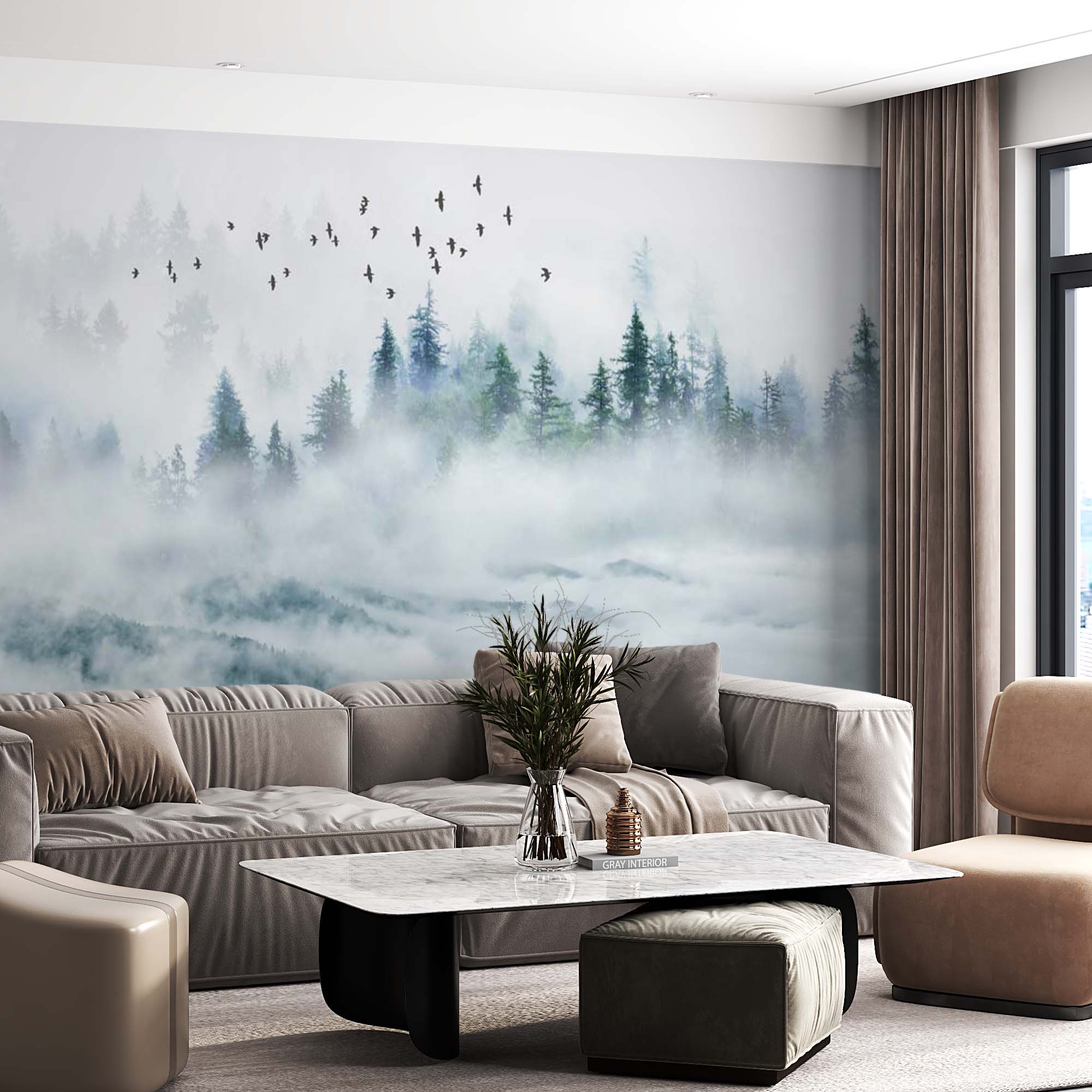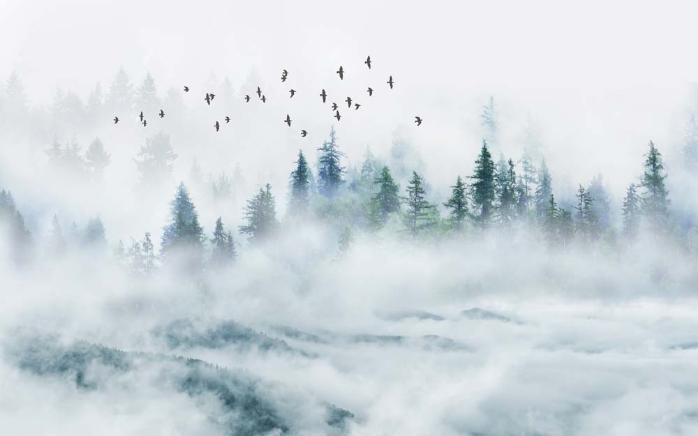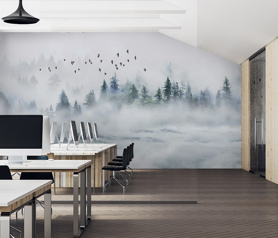 Почему выгодно заказать Фотообои "Сосновый лес в тумане" Artside?