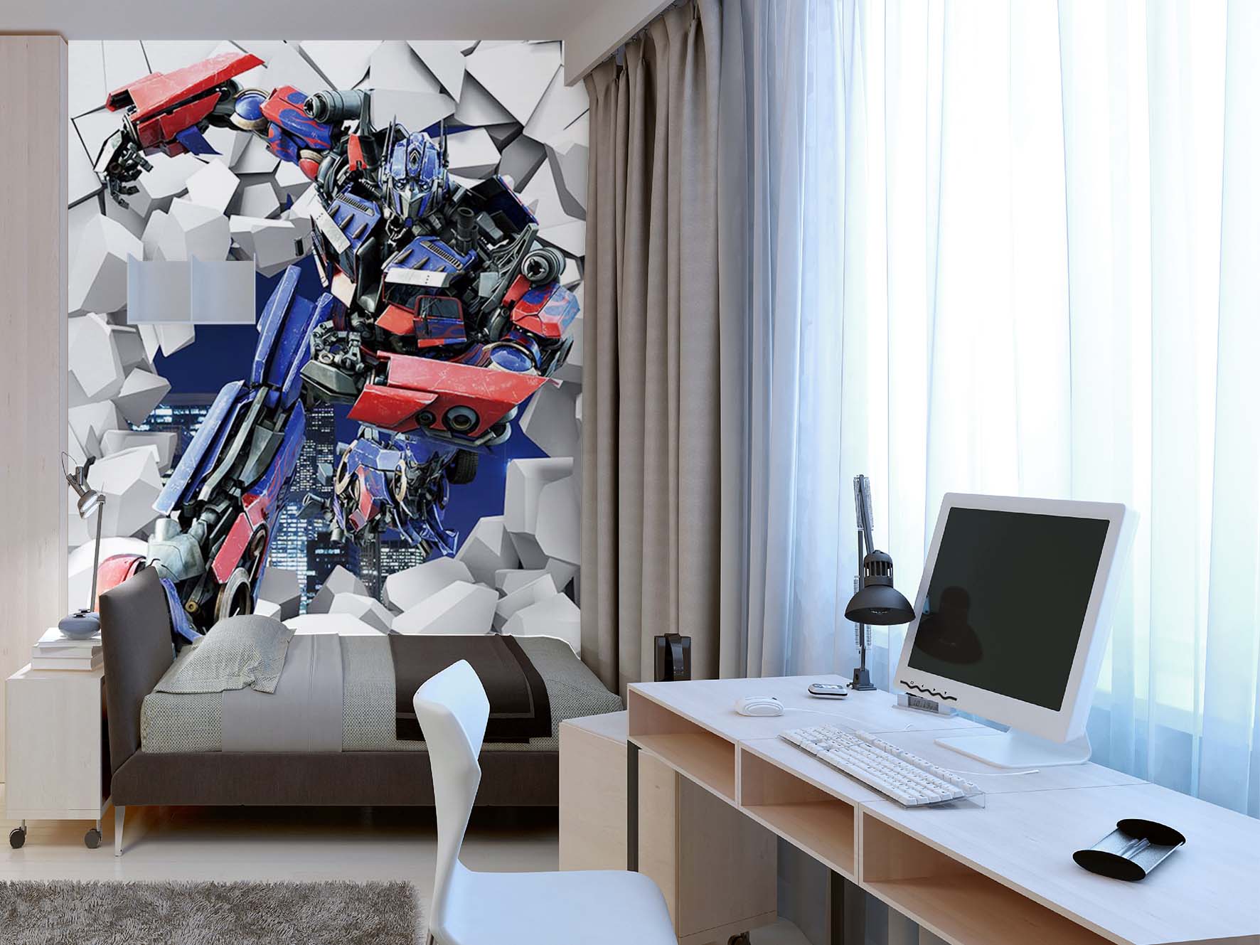 Фотообои "Трансформер" выполнены на немецкой флизелиновой основе с виниловым покрытием. Обои из категории Детские будут служить не только украшением детской комнаты, но и с их помощью малыш сможет изучать мир.