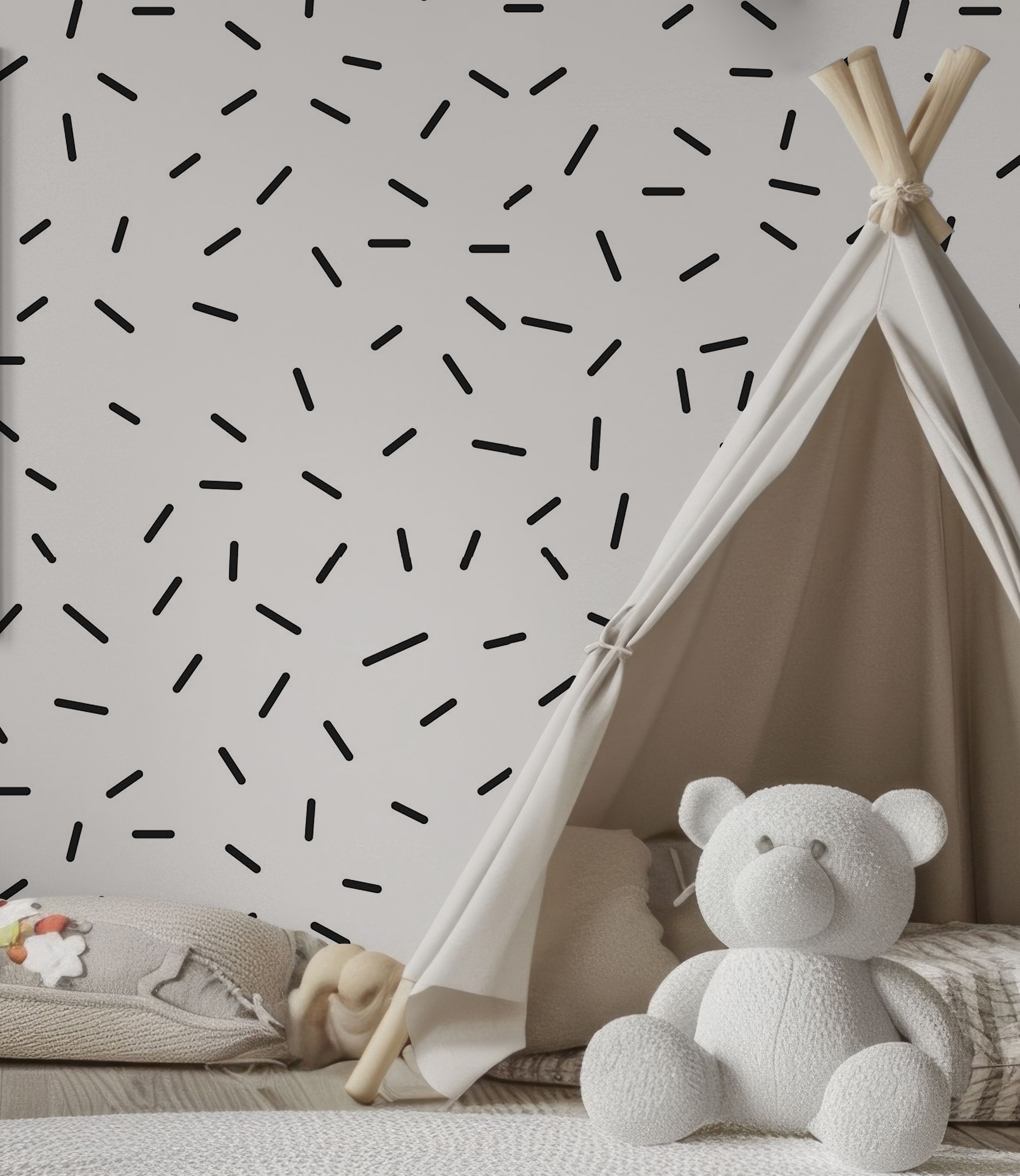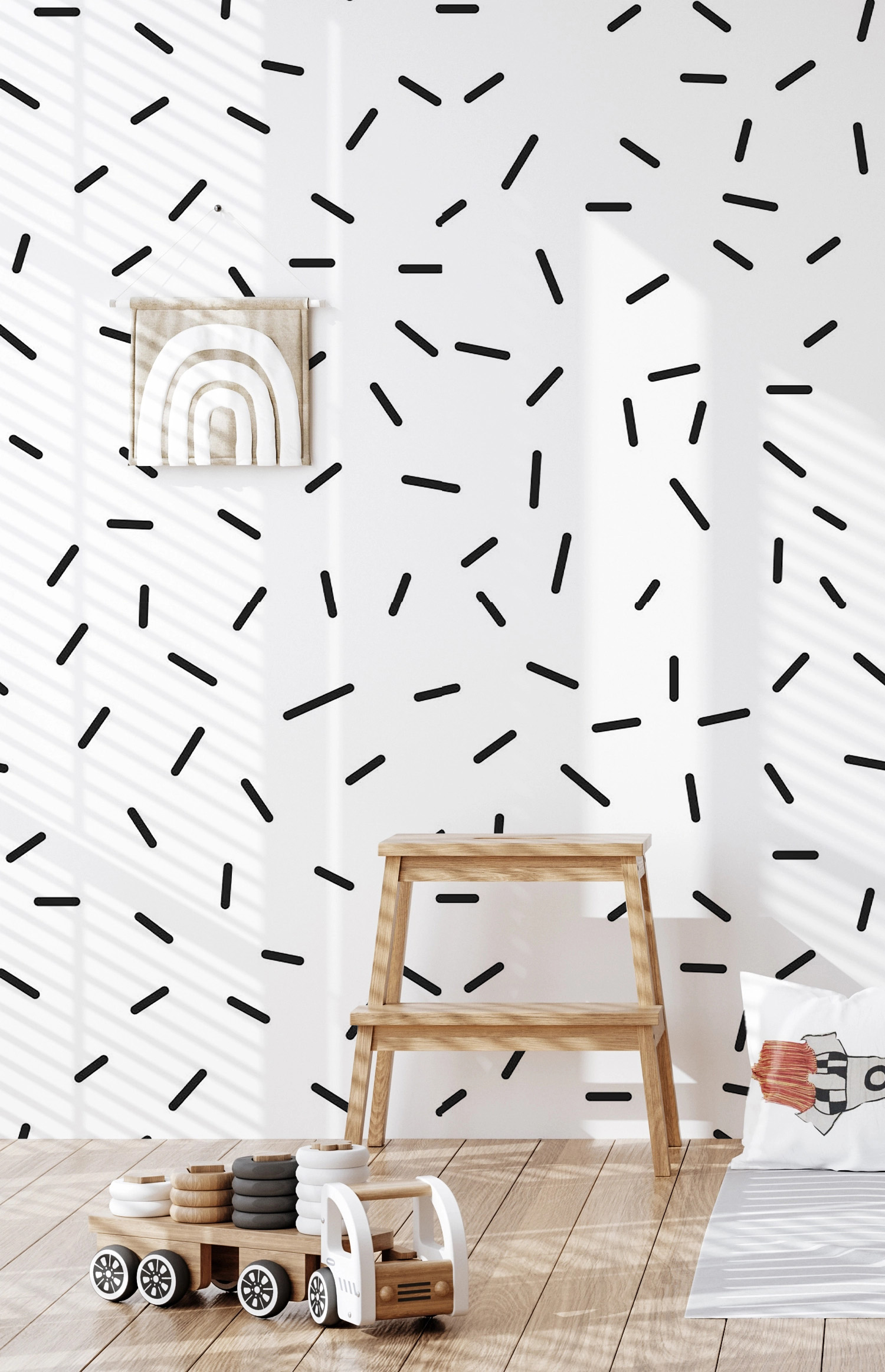 Фотообои "Узор палочки" выполнены на немецкой флизелиновой основе с виниловым покрытием. Обои из категории Детские будут служить не только украшением детской комнаты, но и с их помощью малыш сможет изучать мир.