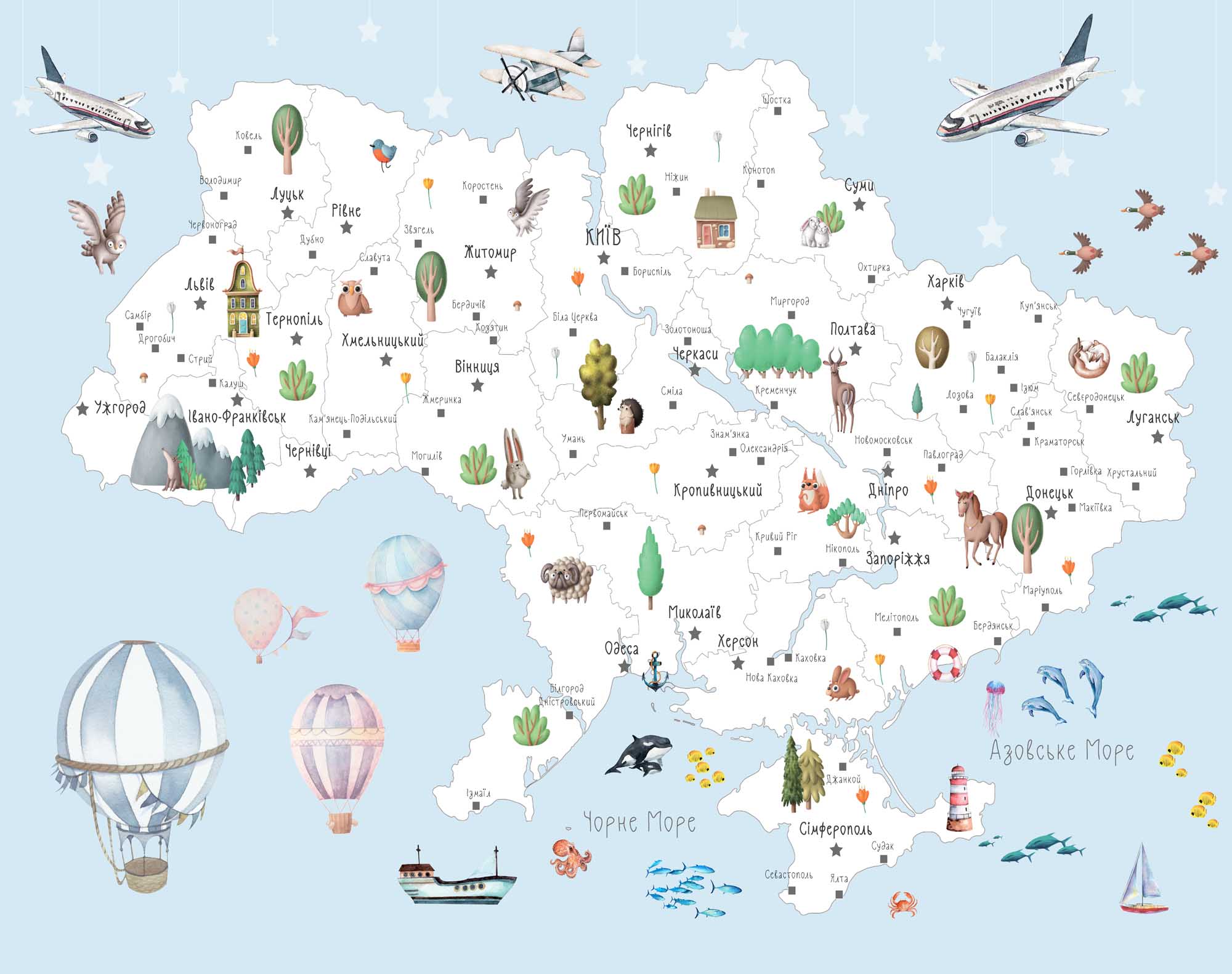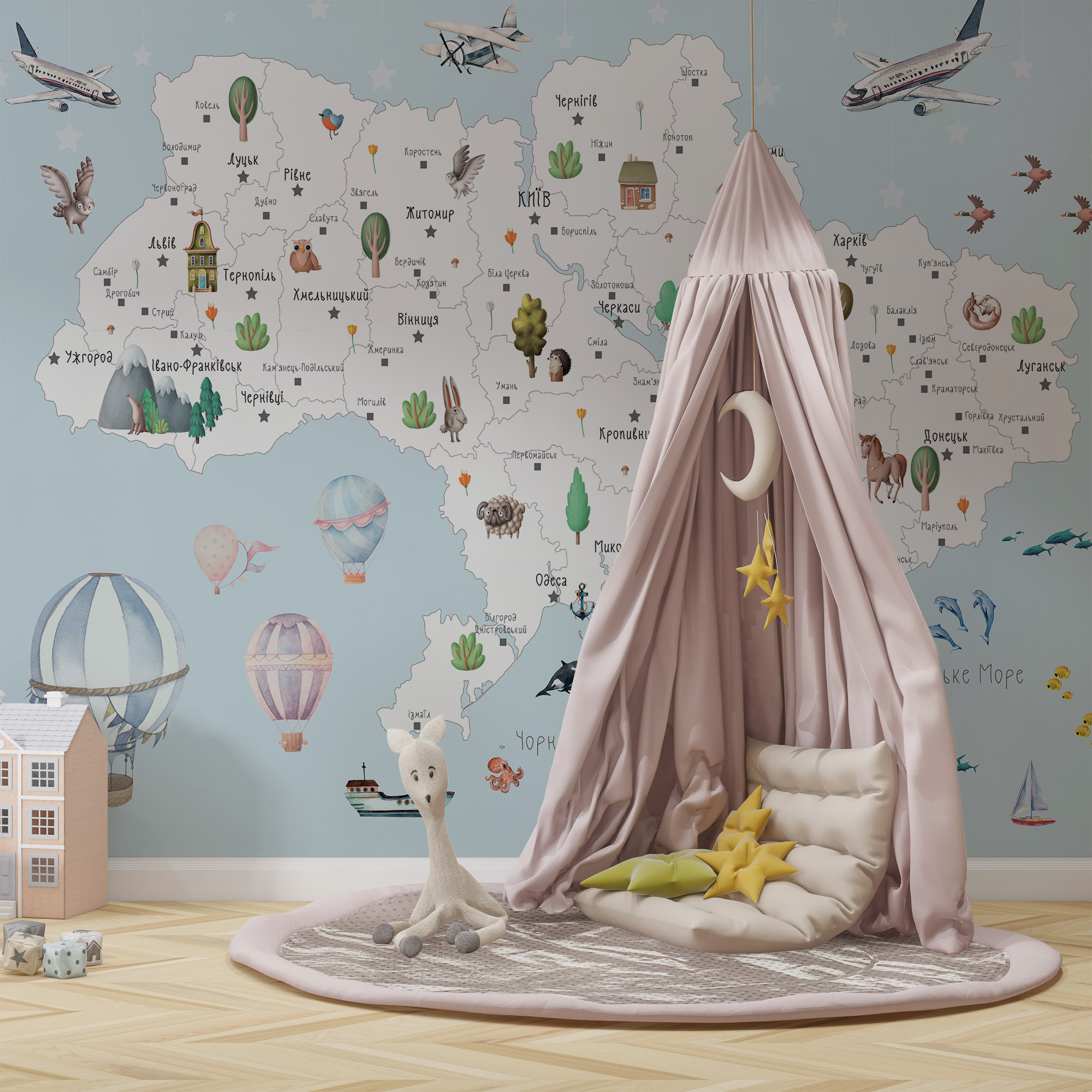 Чому вигідно замовити Фотообои "Дитяча мапа України" Artside?