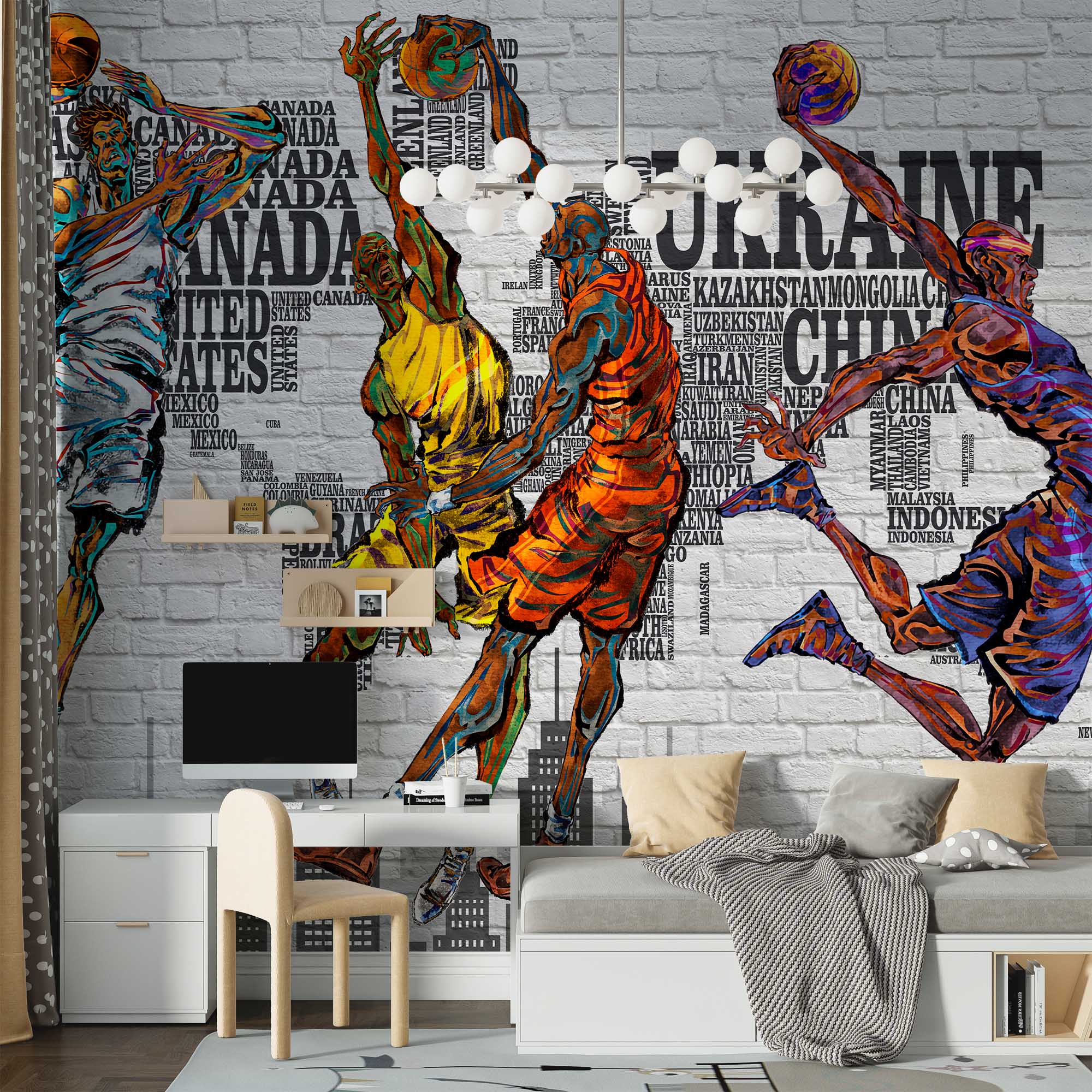 Фотообои "Баскетбол" виконані на німецькій флізеліновій основі з вініловим покриттям. Шпалери з категорії Дитячі будуть служити не тільки прикрасою дитячої кімнати, але і з їх малюк зможе вивчати світ.