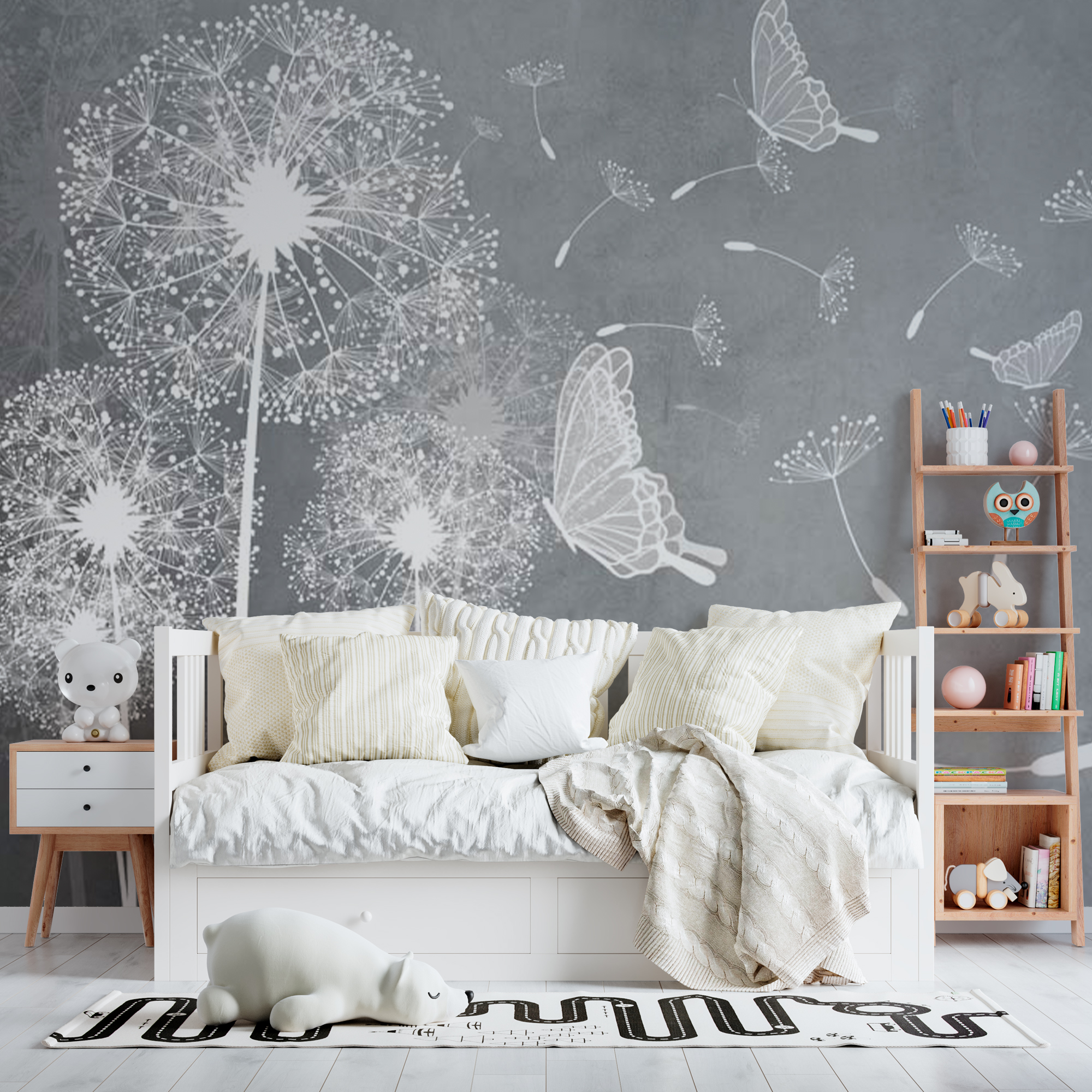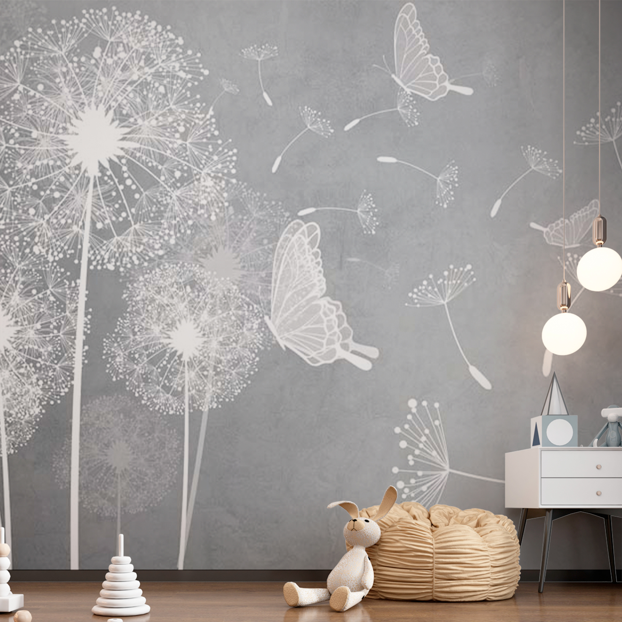 Фотообои "Білі кульбаби" виконані на німецькій флізеліновій основі з вініловим покриттям. Шпалери з категорії Дитячі будуть служити не тільки прикрасою дитячої кімнати, але і з їх малюк зможе вивчати світ.