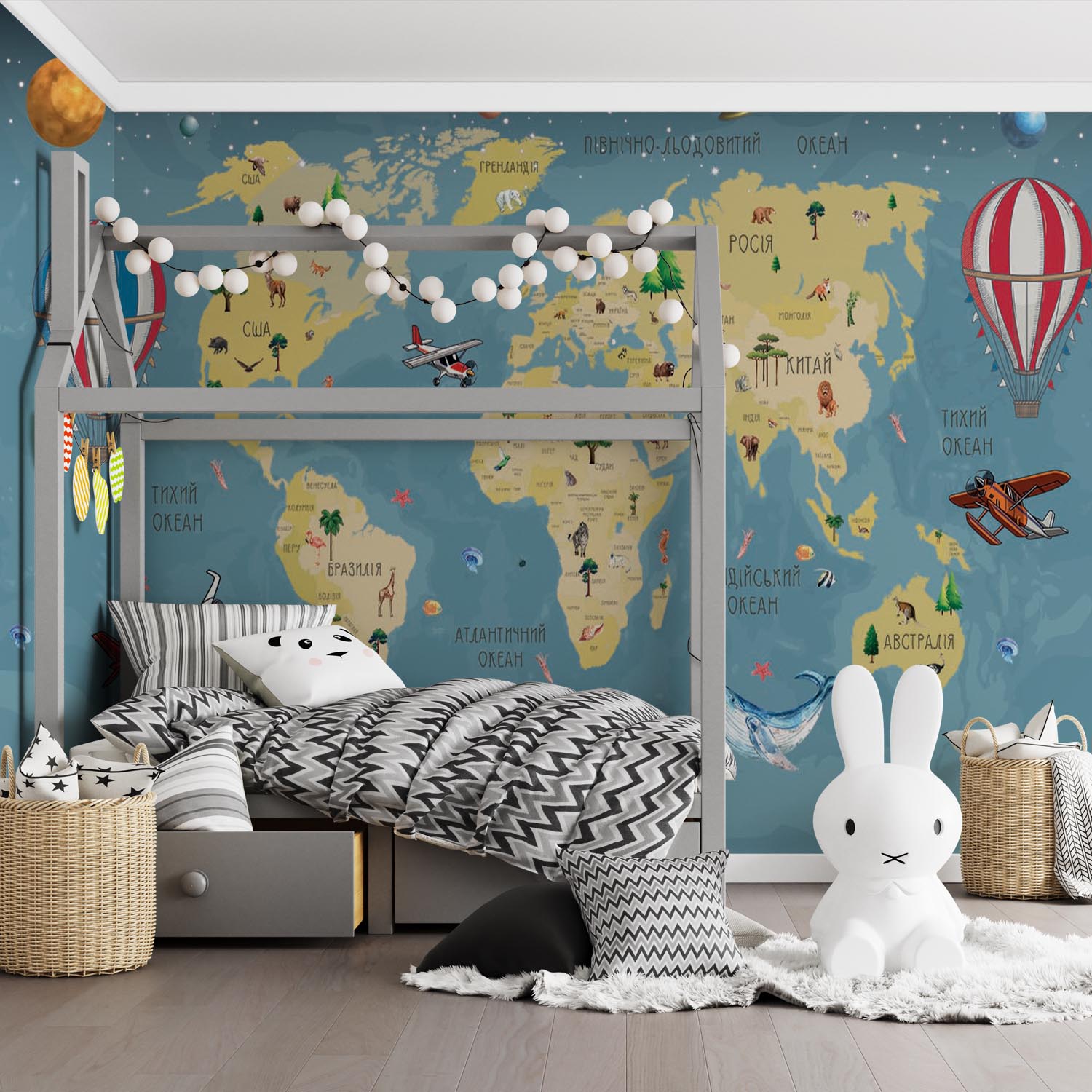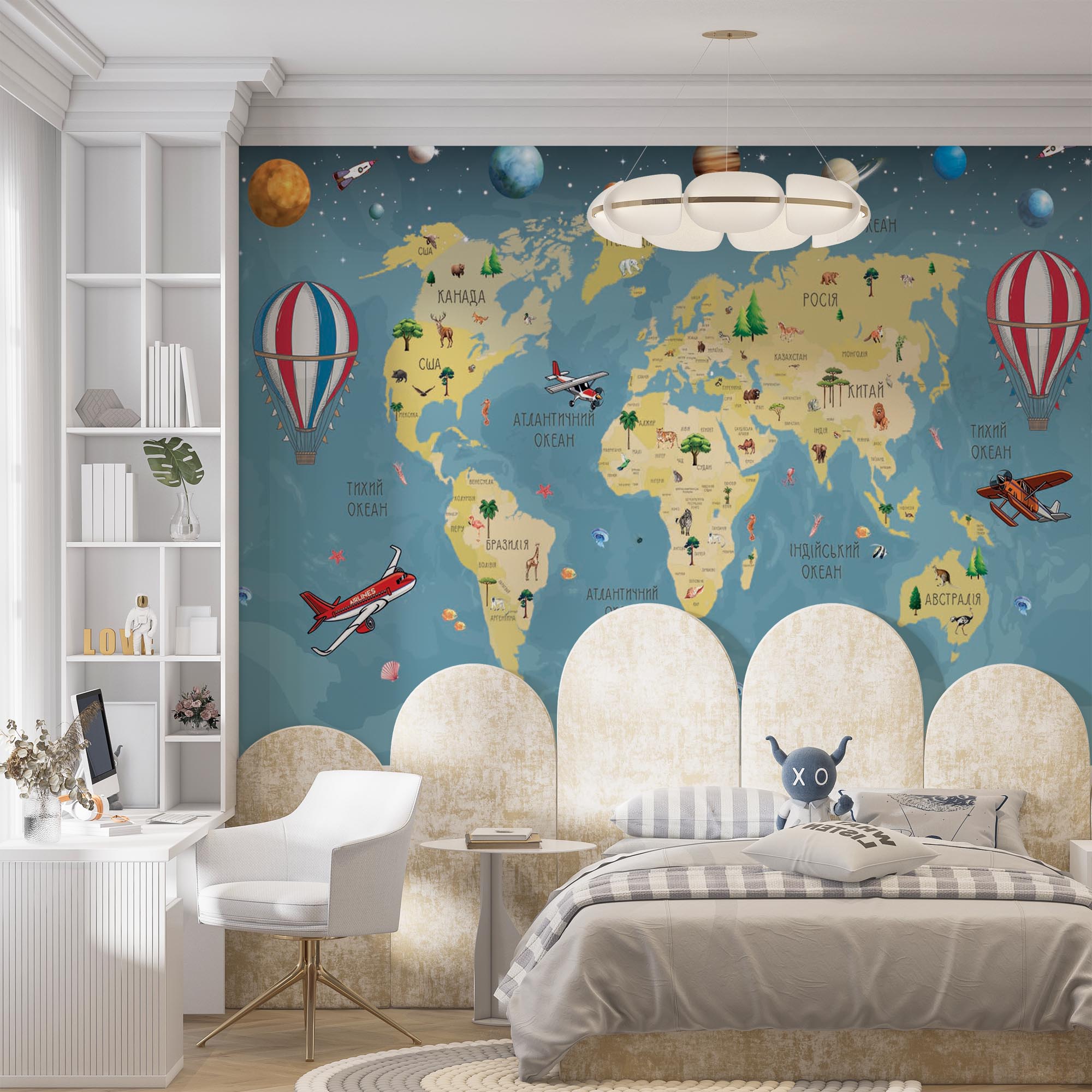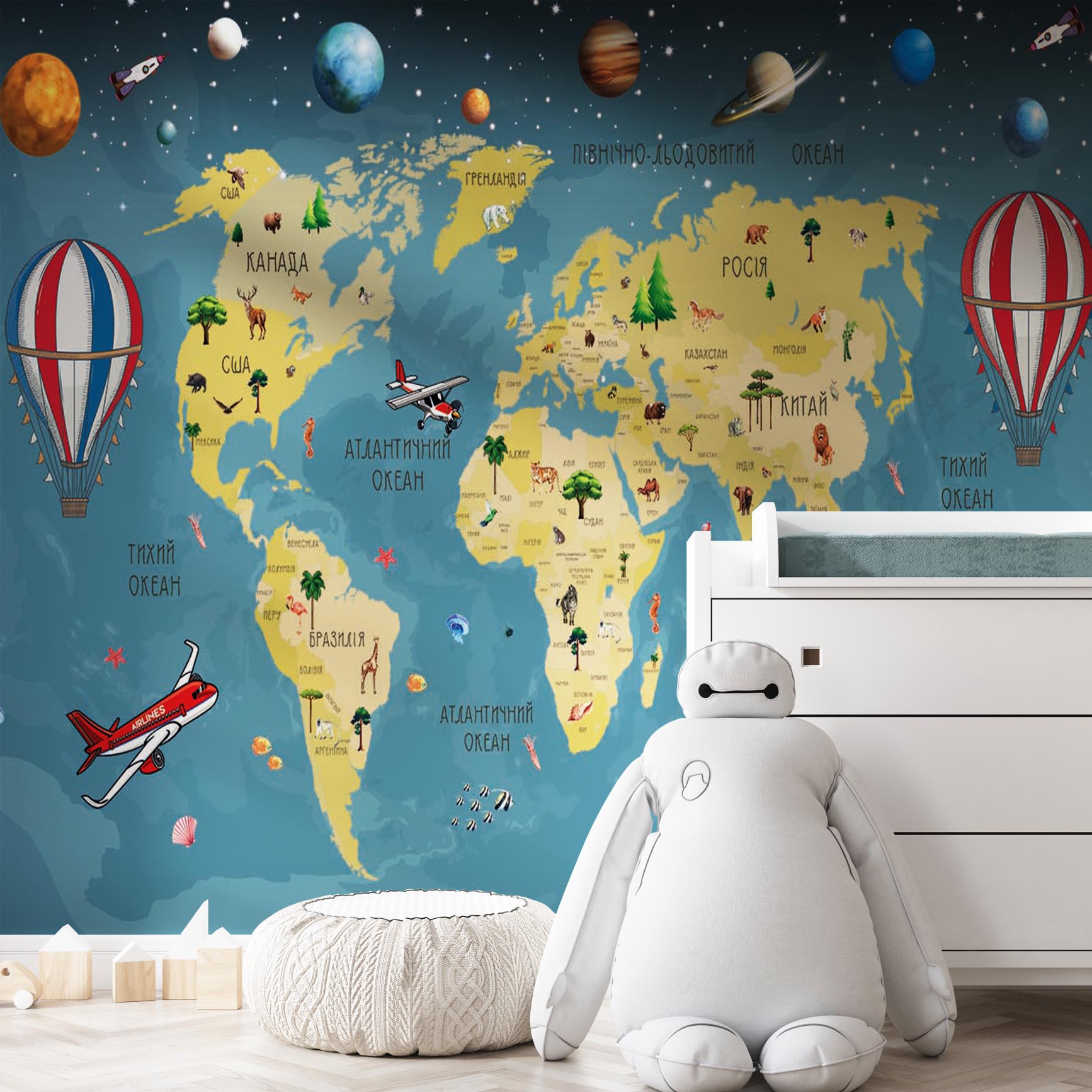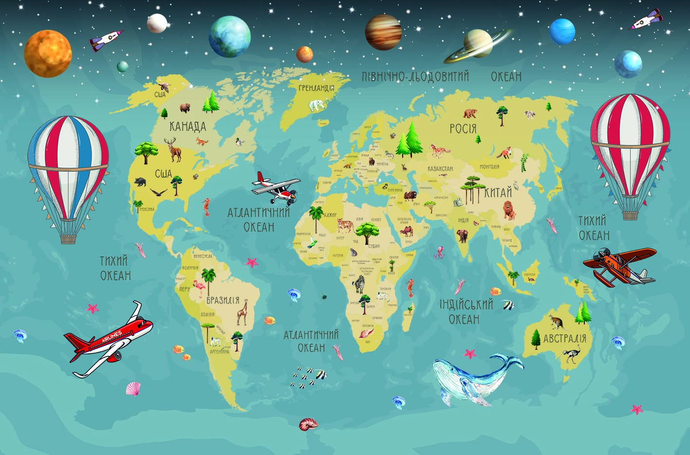 Фотошпалери 1305221UA з каталогу Artside можна виготовити у вашому розмірі під замовлення, а так само дизайнер може адаптувати дане зображення під ваші потреби. У нашому інтернет-магазині ви знайдете більш 2-х тисяч фотошпалер дитячі мапи. Фотообои Арт Сайд легкі в поклейки, а термін виготовлення становить всього 2 дні.