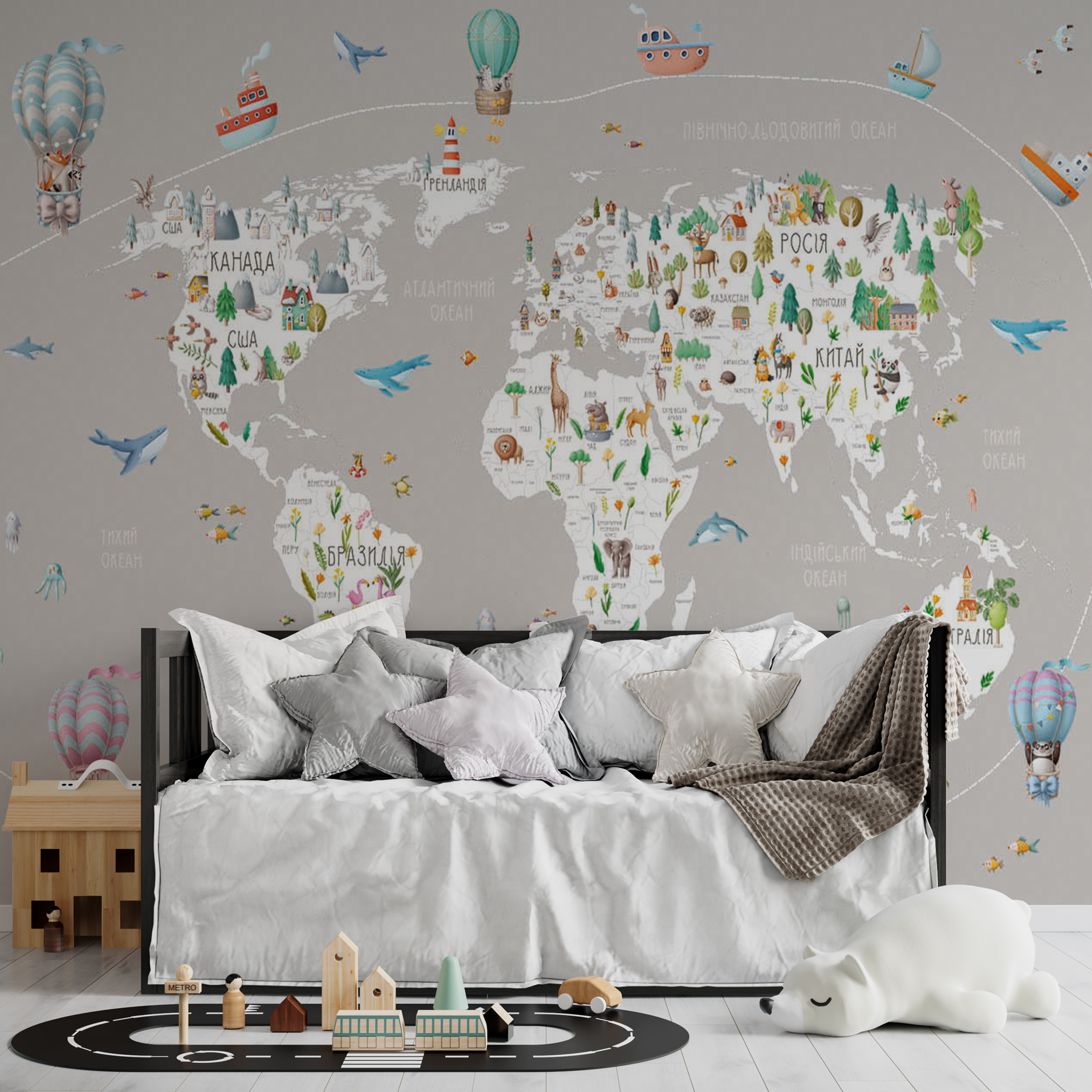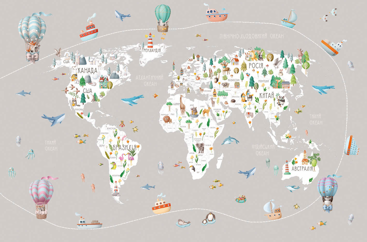 Фотошпалери 1405221-2 з каталогу Artside можна виготовити у вашому розмірі під замовлення, а так само дизайнер може адаптувати дане зображення під ваші потреби. У нашому інтернет-магазині ви знайдете більш 2-х тисяч фотошпалер дитячі мапи. Фотообои Арт Сайд легкі в поклейки, а термін виготовлення становить всього 2 дні.