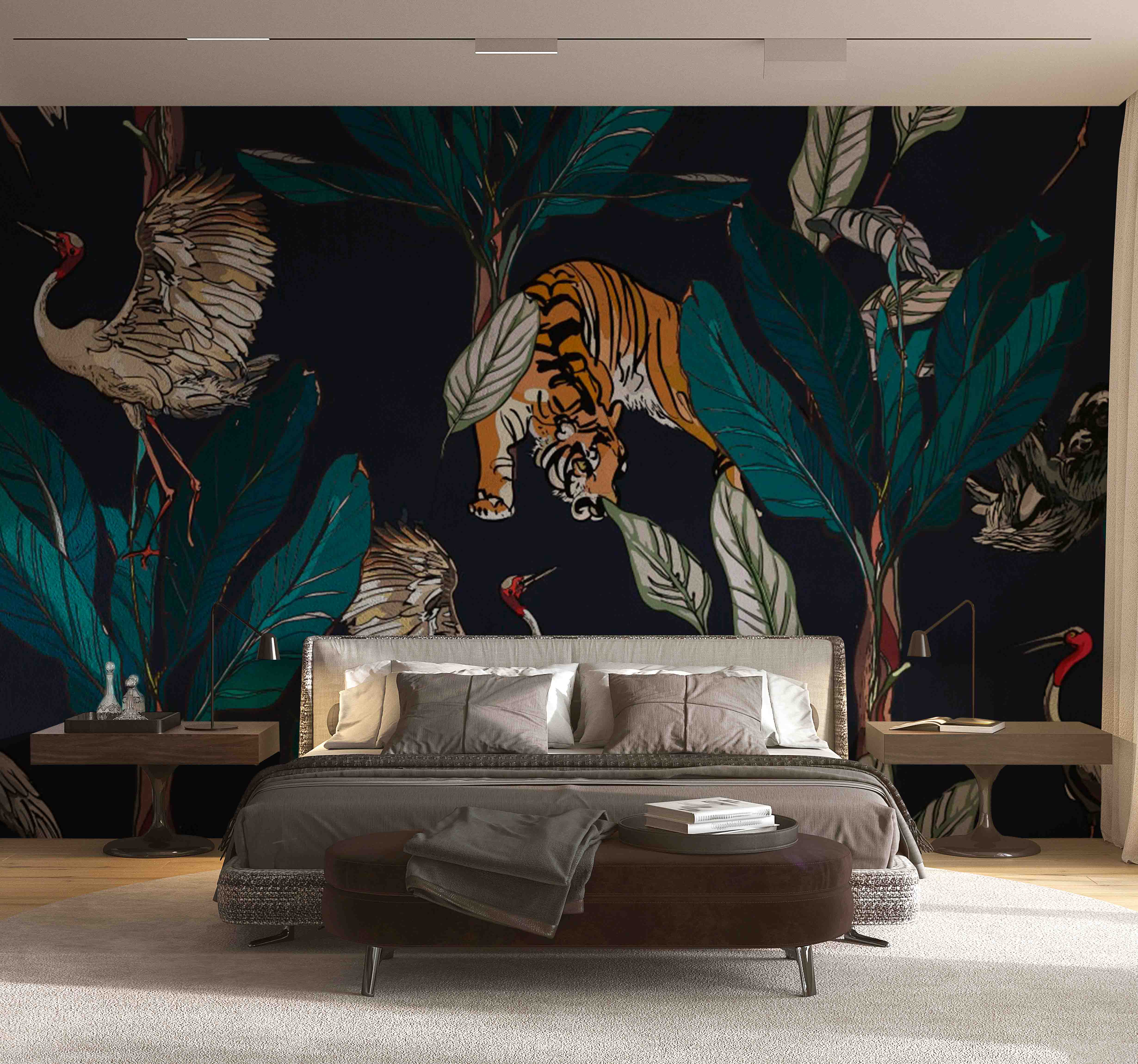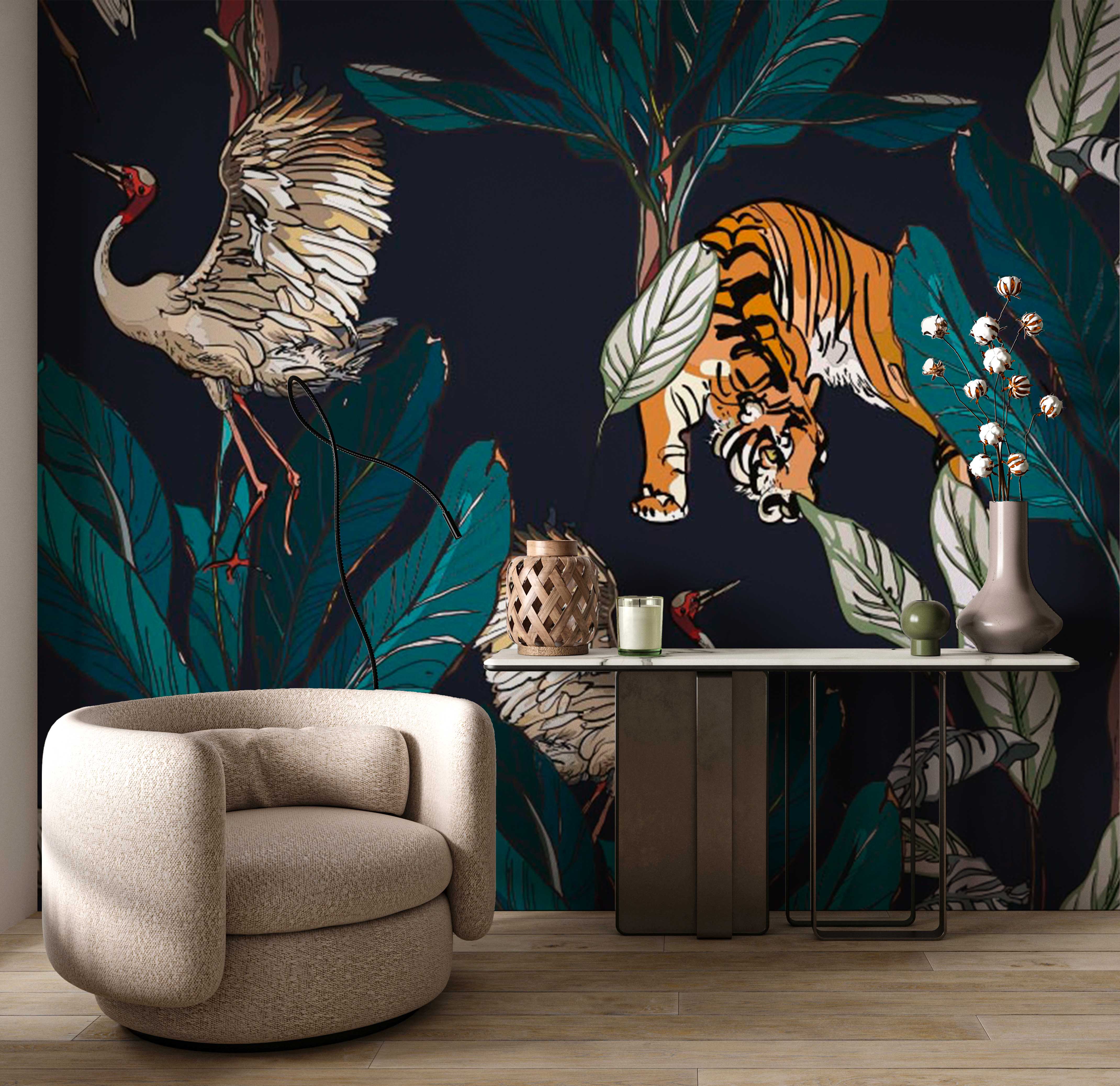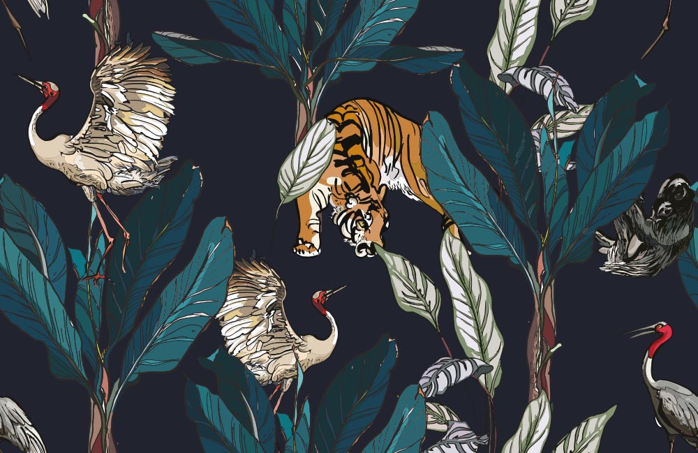Чому вигідно замовити Фотообои "Тигри і журавлі у пальмовому листі" Artside?
