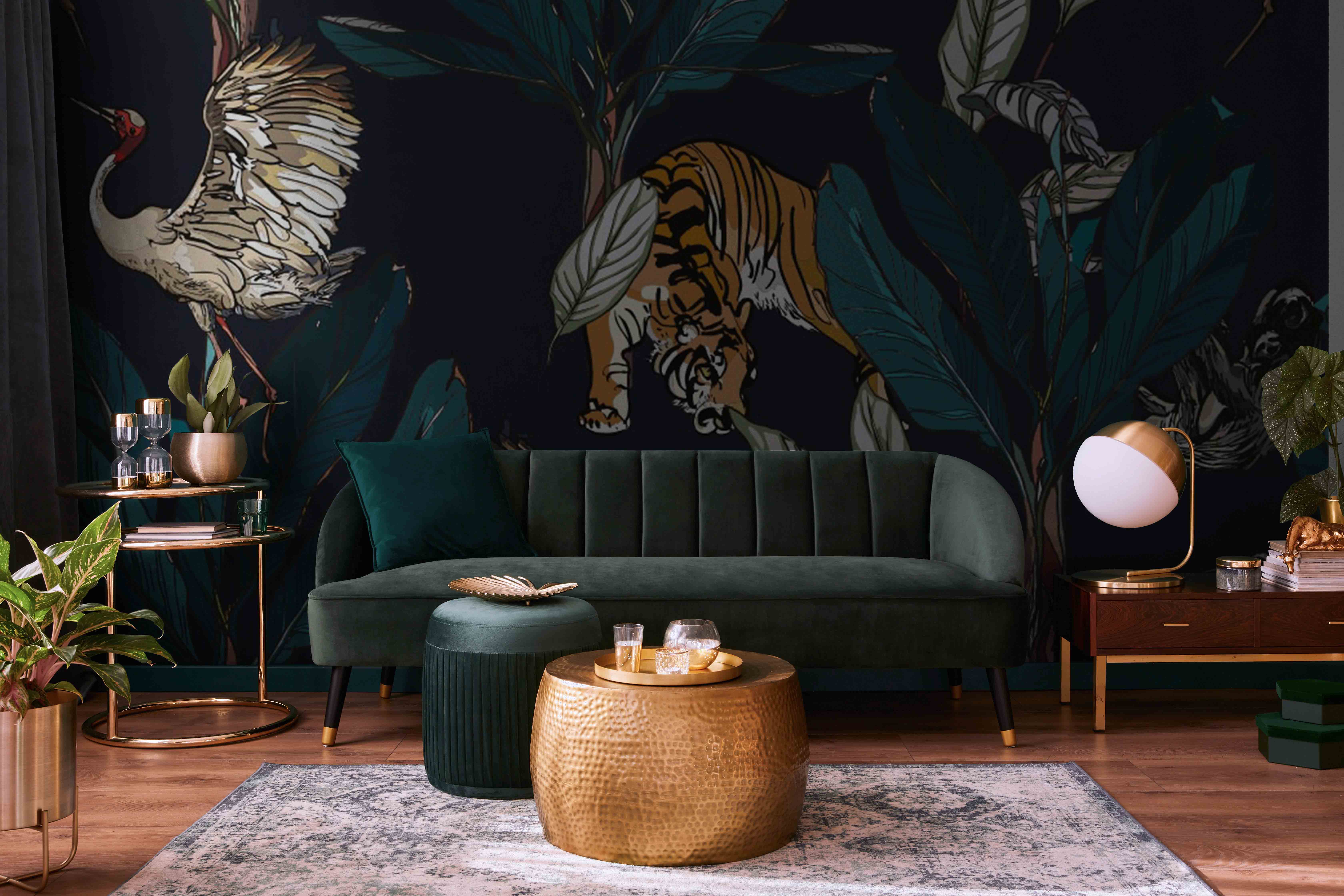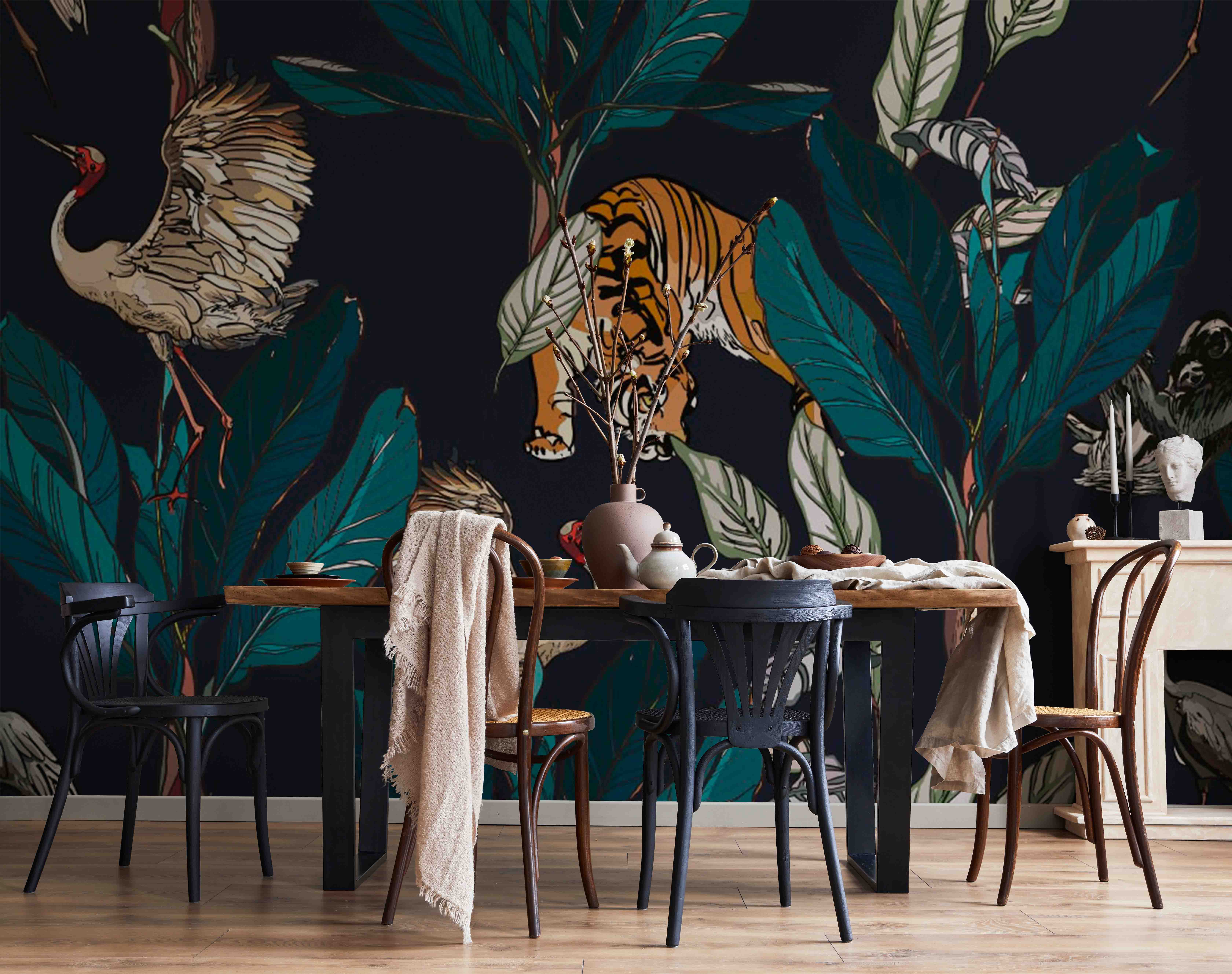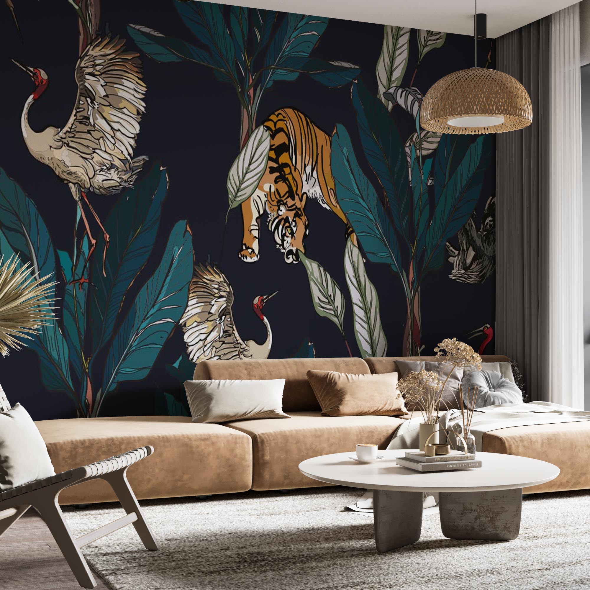 Чому вигідно замовити Фотообои "Тигри і журавлі у пальмовому листі" Artside?